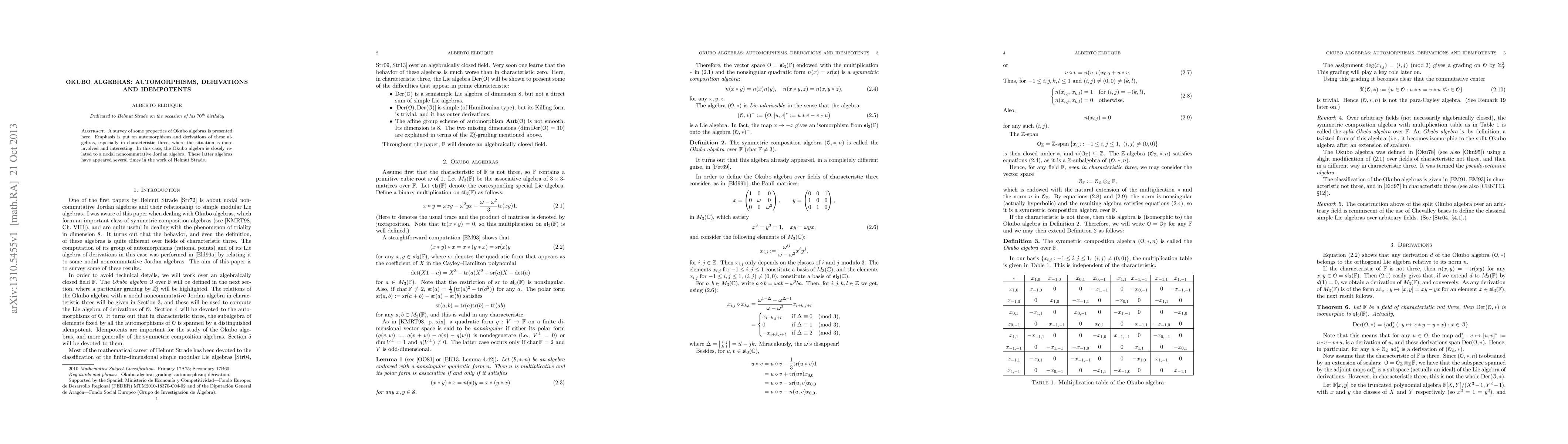 This paper surveys Okubo algebras, focusing on automorphisms and derivations, particularly in characteristic three, where they relate to nodal noncommutative Jordan algebras.