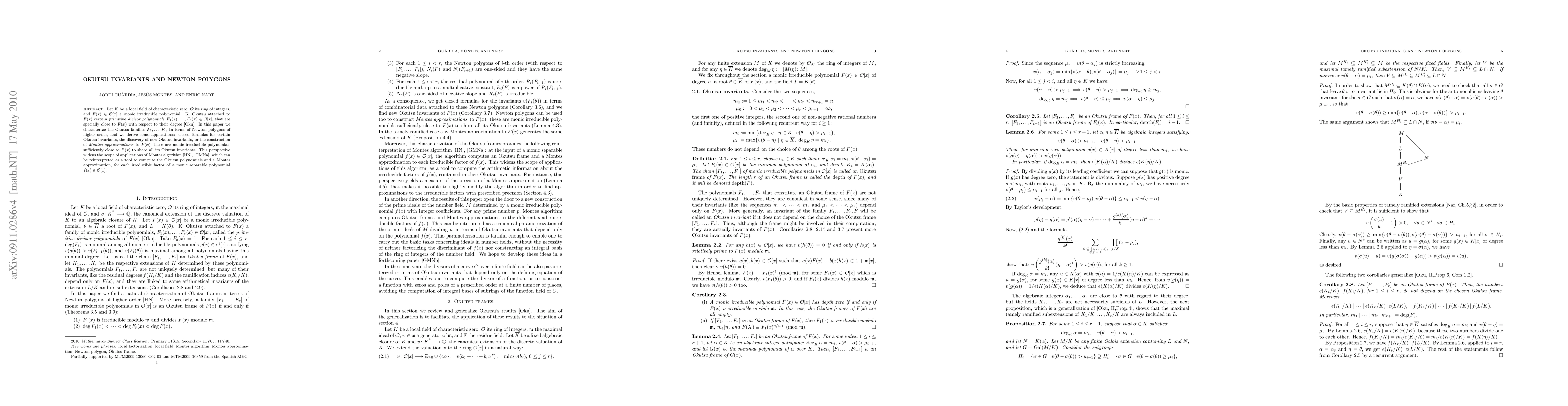 Let K be a local field of characteristic zero, O its ring of integers and F(x) a monic irreducible polynomial with coefficients in O. K. Okutsu attached to F(x) certain primitive divisor polynomials F_1(x),..., F_r(x), that are specially close to F(x) with respect to their degree. In this paper we characterize the Okutsu families [F_1,..., F_r] in terms of certain Newton polygons of higher order, and we derive some applications: closed formulas for certain Okutsu invariants, the discovery of new Okutsu invariants, or the construction of Montes approximations to F(x); these are monic irreducible polynomials sufficiently close to F(x) to share all its Okutsu invariants. This perspective widens the scope of applications of Montes' algorithm, which can be reinterpreted as a tool to compute the Okutsu polynomials and a Montes approximation, for each irreducible factor of a monic separable polynomial f(x) in O[x].