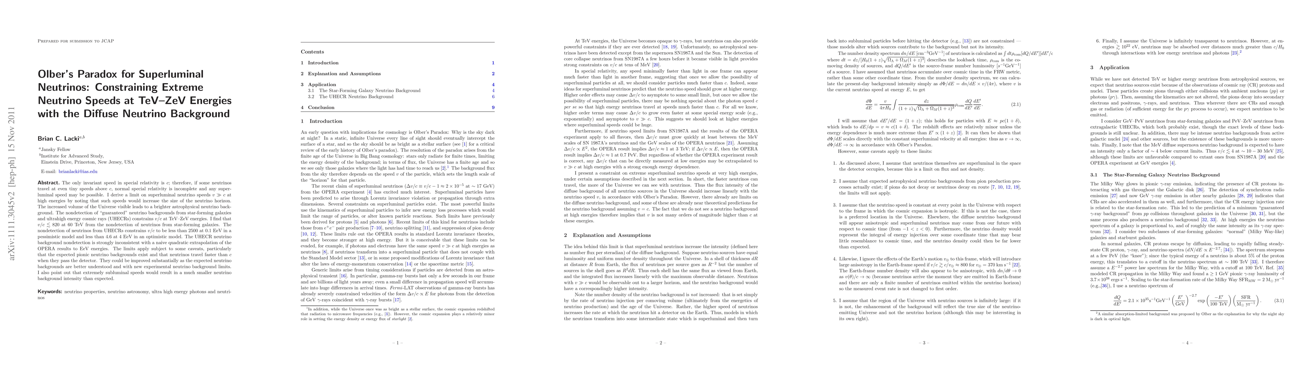 The only invariant speed in special relativity is c; therefore, if some neutrinos travel at even tiny speeds above c, normal special relativity is incomplete and any superluminal speed may be possible. I derive a limit on superluminal neutrino speeds v >> c at high energies by noting that such speeds would increase the size of the neutrino horizon. The increased volume of the Universe visible leads to a brighter astrophysical neutrino background. The nondetection of "guaranteed" neutrino backgrounds from star-forming galaxies and ultrahigh energy cosmic rays (UHECRs) constrains v/c at TeV--ZeV energies. I find that v/c <= 820 at 60 TeV from the nondetection of neutrinos from star-forming galaxies. The nondetection of neutrinos from UHECRs constrains v/c to be less than 2500 at 0.1 EeV in a pessimistic model and less than 4.6 at 4 EeV in an optimistic model. The UHECR neutrino background nondetection is strongly inconsistent with a naive quadratic extrapolation of the OPERA results to EeV energies. The limits apply subject to some caveats, particularly that the expected pionic neutrino backgrounds exist and that neutrinos travel faster than c when they pass the detector. They could be improved substantially as the expected neutrino backgrounds are better understood and with new experimental neutrino background limits. I also point out that extremely subluminal speeds would result in a much smaller neutrino background intensity than expected.