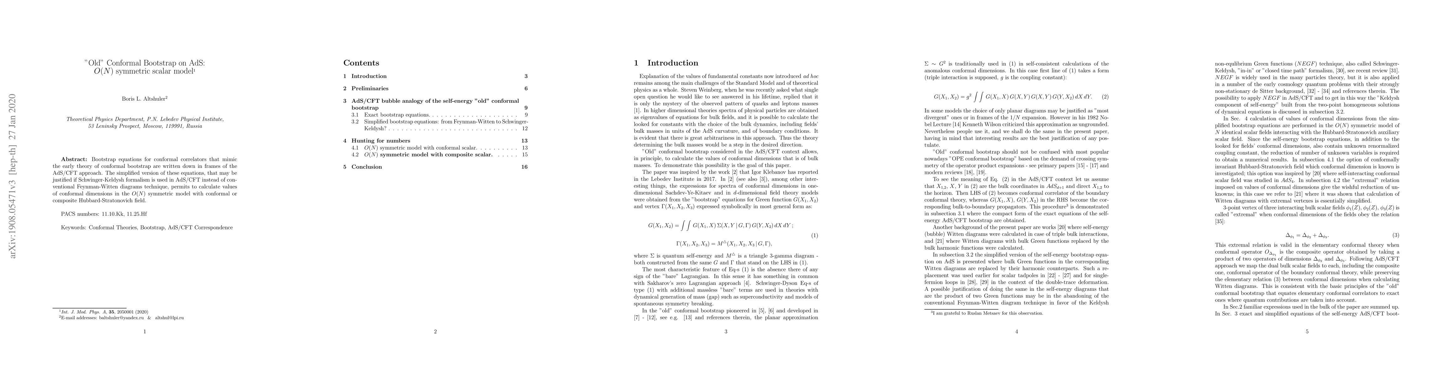 This paper develops bootstrap equations for conformal correlators in the context of AdS/CFT, focusing on the $O(N)$ symmetric scalar model. It simplifies these equations using the Schwinger-Keldysh formalism, enabling the calculation of conformal dimensions in the presence of a composite Hubbard-Stratonovich field.