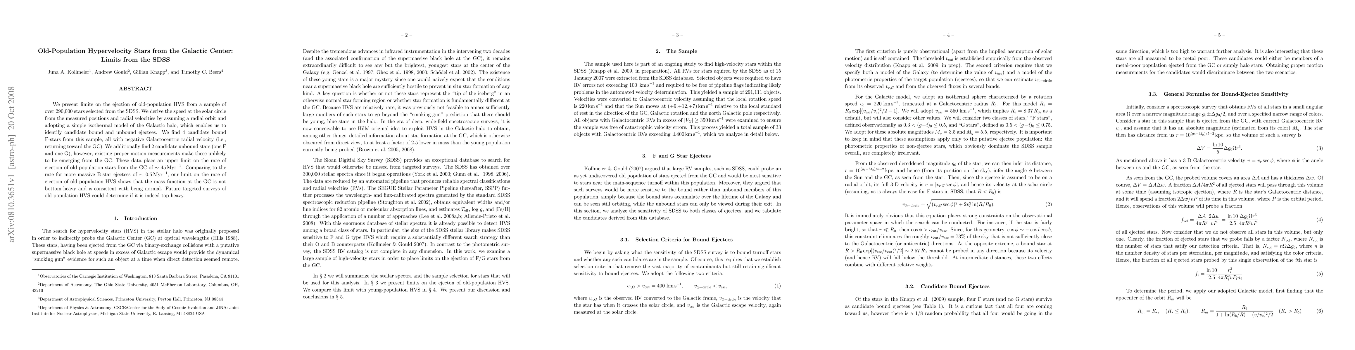 We present limits on the ejection of old-population HVS from a sample of over 290,000 stars selected from the SDSS. We derive the speed at the solar circle from the measured positions and radial velocities by assuming a radial orbit and adopting a simple isothermal model of the Galactic halo, which enables us to identify candidate bound and unbound ejectees. We find 4 candidate bound F-stars from this sample, all with negative Galactocentric radial velocity (i.e., returning toward the GC). We additionally find 2 candidate unbound stars (one F and one G), however, existing proper motion measurements make these unlikely to be emerging from the GC. These data place an upper limit on the rate of ejection of old-population stars from the GC of ~45/Myr. Comparing to the rate for more massive B-star ejectees of ~0.5/Myr, our limit on the rate of ejection of old-population HVS shows that the mass function at the GC is not bottom-heavy and is consistent with being normal. Future targeted surveys of old-population HVS could determine if it is indeed top-heavy.