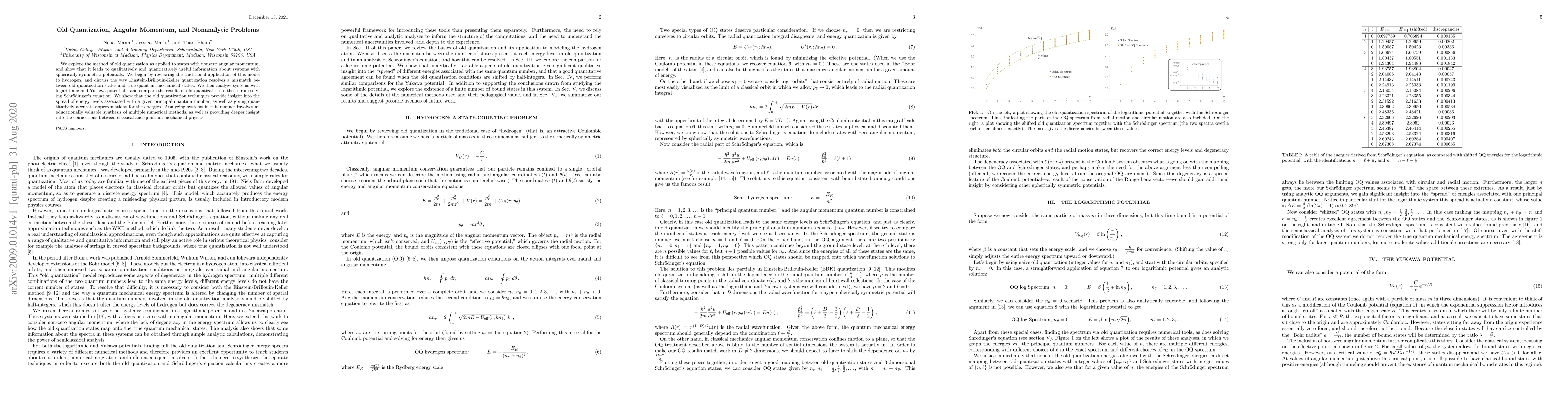 Researchers explore the application of old quantization to systems with nonzero angular momentum, showing it provides insight into energy level spread and accurate approximations for energies in spherical symmetric potentials.