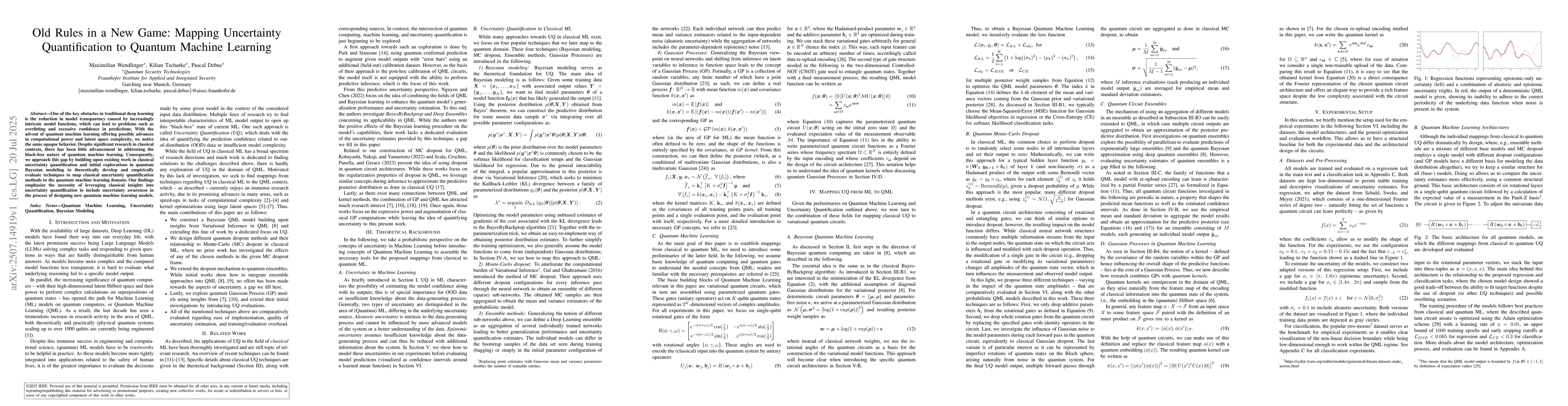 One of the key obstacles in traditional deep learning is the reduction in model transparency caused by increasingly intricate model functions, which can lead to problems such as overfitting and excessive confidence in predictions. With the advent of quantum machine learning offering possible advances in computational power and latent space complexity, we notice the same opaque behavior. Despite significant research in classical contexts, there has been little advancement in addressing the black-box nature of quantum machine learning. Consequently, we approach this gap by building upon existing work in classical uncertainty quantification and initial explorations in quantum Bayesian modeling to theoretically develop and empirically evaluate techniques to map classical uncertainty quantification methods to the quantum machine learning domain. Our findings emphasize the necessity of leveraging classical insights into uncertainty quantification to include uncertainty awareness in the process of designing new quantum machine learning models.