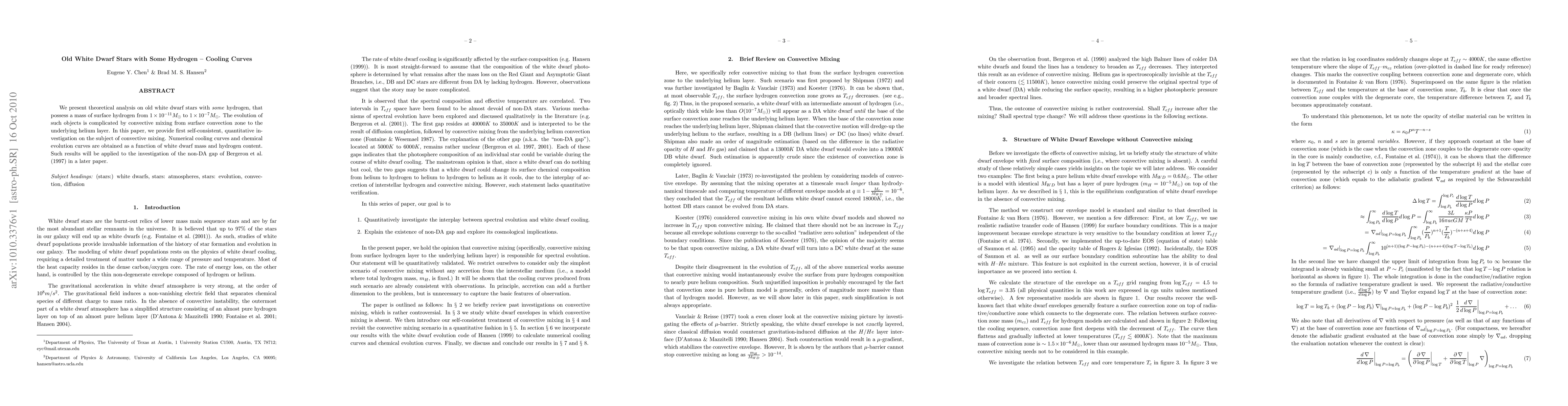 This paper presents a theoretical analysis of old white dwarf stars containing a small amount of hydrogen, with mass ranging from $1\times10^{-11}M_{\sun}$ to $1\times10^{-7}M_{\sun}$. The study investigates the complex evolution due to convective mixing and provides the first self-consistent quantitative investigation into this phenomenon, yielding numerical cooling and chemical evolution curves.