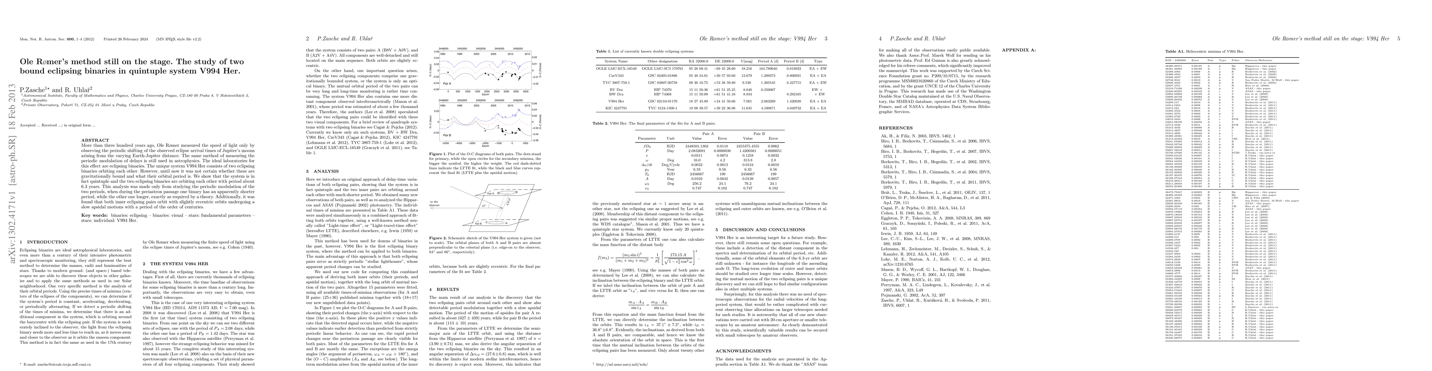 This study confirms that the quintuple system V994 Her contains two gravitationally bound eclipsing binaries with a 6.3-year orbital period, using the same light delay method Ole Romer employed to measure the speed of light. The analysis reveals both inner binaries exhibit slightly eccentric orbits with slow apsidal motions over centuries.
