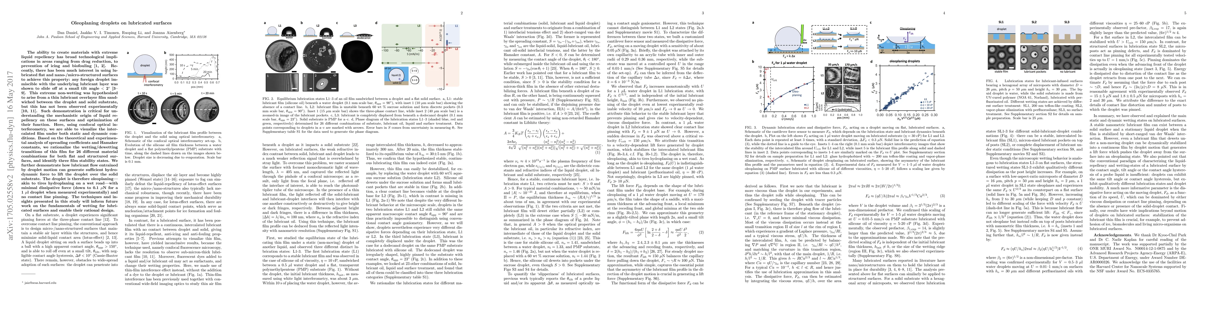 Recently, there has been much interest in using lubricated flat and nano-/micro-structured surfaces to achieve extreme liquid-repellency: any foreign droplet immiscible with the underlying lubricant layer was shown to slide off at a small tilt angle $<$ 5$^{\circ}$. This behavior was hypothesized to arise from a thin lubricant overlayer film sandwiched between the droplet and solid substrate, but this has not been observed experimentally. Here, using confocal optical interferometry, we are able to visualize the intercalated film under both static and dynamic conditions. We further demonstrate that the lubricant flow entrained by droplet motion can transform a partially dewetted film into a continuous layer, by generating a sufficient hydrodynamic force to lift the droplet over the solid substrate. The droplet is therefore oleoplaning, akin to tires hydroplaning on a wet road, with minimal dissipative force (down to 0.1 $\mu$N for 1 $\mu$l droplet when measured using a cantilever force sensor) and no contact line pinning. The techniques and insights presented in this study will inform future work on the fundamentals of wetting for lubricated surfaces and enable their rational design.