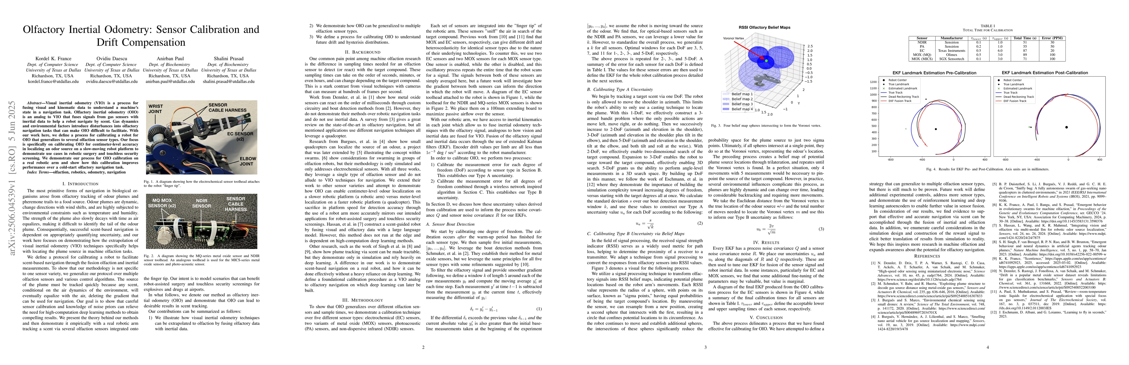 The paper presents a novel calibration method for olfactory inertial odometry, enabling precise scent-based navigation for robots.