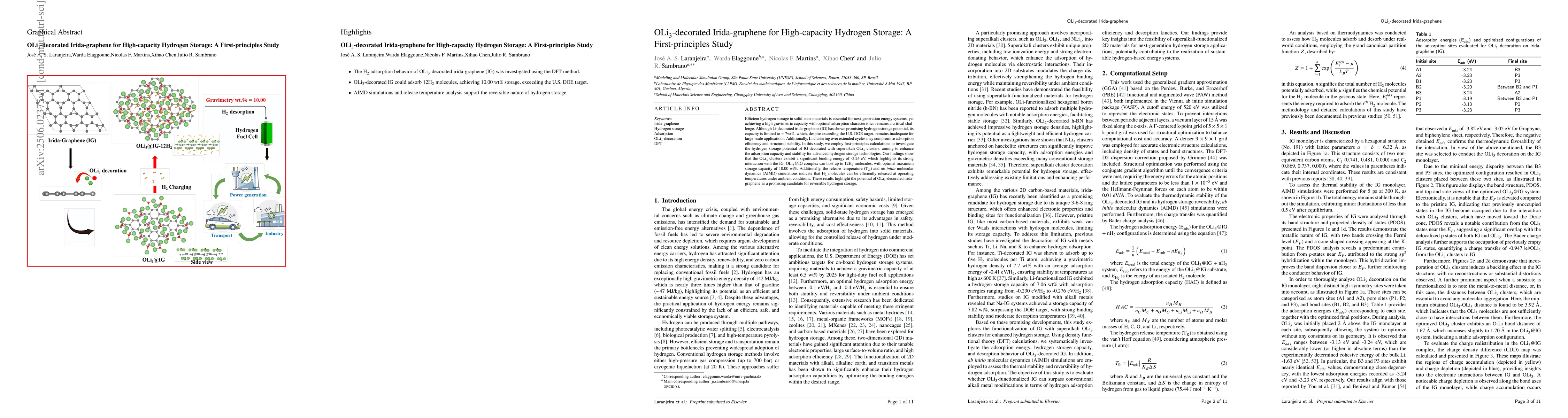 This research highlights the potential of OLi3-decorated irida-graphene as a promising candidate for reversible hydrogen storage, addressing the need for efficient solid-state materials in next-generation energy systems.