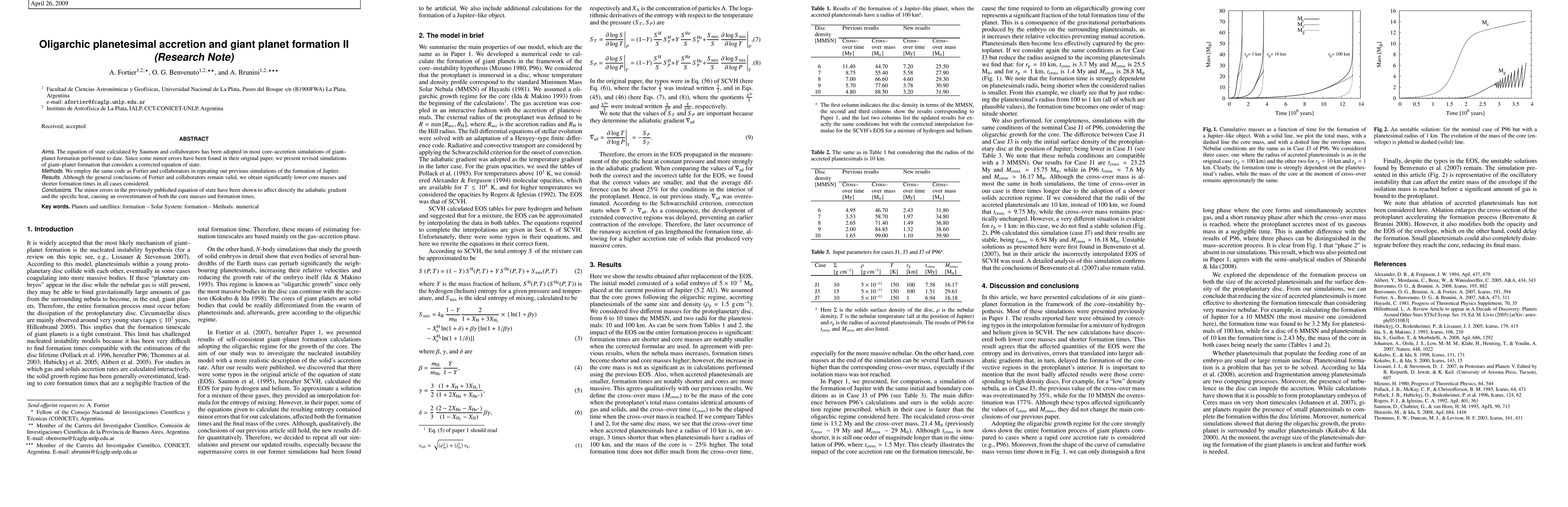 This paper revises simulations of giant-planet formation using a corrected equation of state, finding significantly lower core masses and shorter formation times compared to previous models. The errors in the original equation of state led to overestimations in core masses and formation durations.