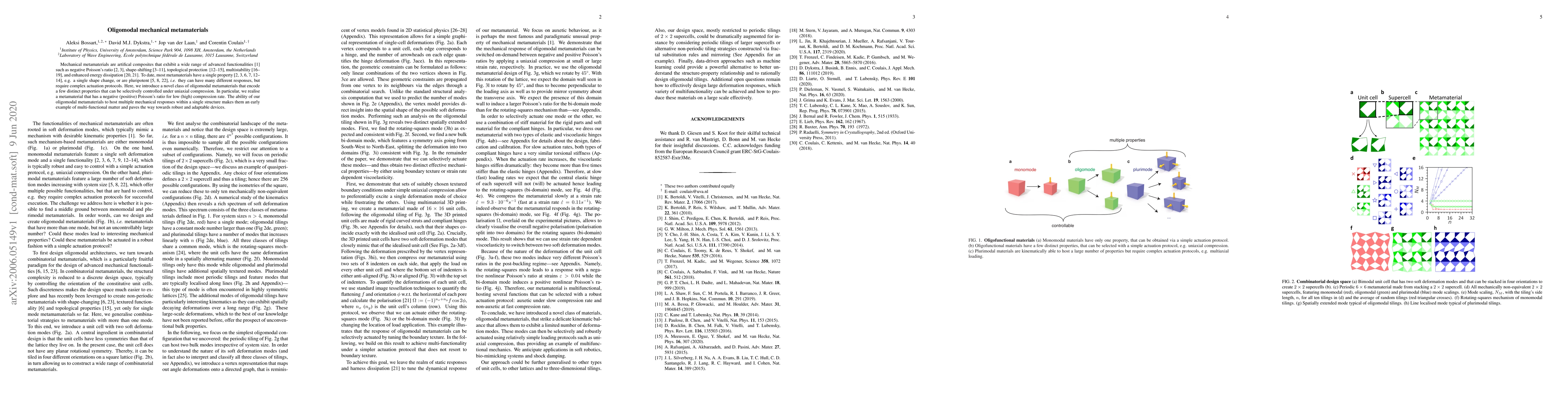 Mechanical metamaterials are artifical composites that exhibit a wide range of advanced functionalities such as negative Poisson's ratio, shape-shifting, topological protection, multistability, and enhanced energy dissipation. To date, most metamaterials have a single property, e.g. a single shape change, or are pluripotent, \emph{i.e.} they can have many different responses, but require complex actuation protocols. Here, we introduce a novel class of oligomodal metamaterials that encode a few distinct properties that can be selectively controlled under uniaxial compression. In particular, we realise a metamaterial that has a negative (positive) Poisson's ratio for low (high) compression rate. The ability of our oligomodal metamaterials to host multiple mechanical responses within a single structure makes them an early example of multi-functional matter and paves the way towards robust and adaptable devices.