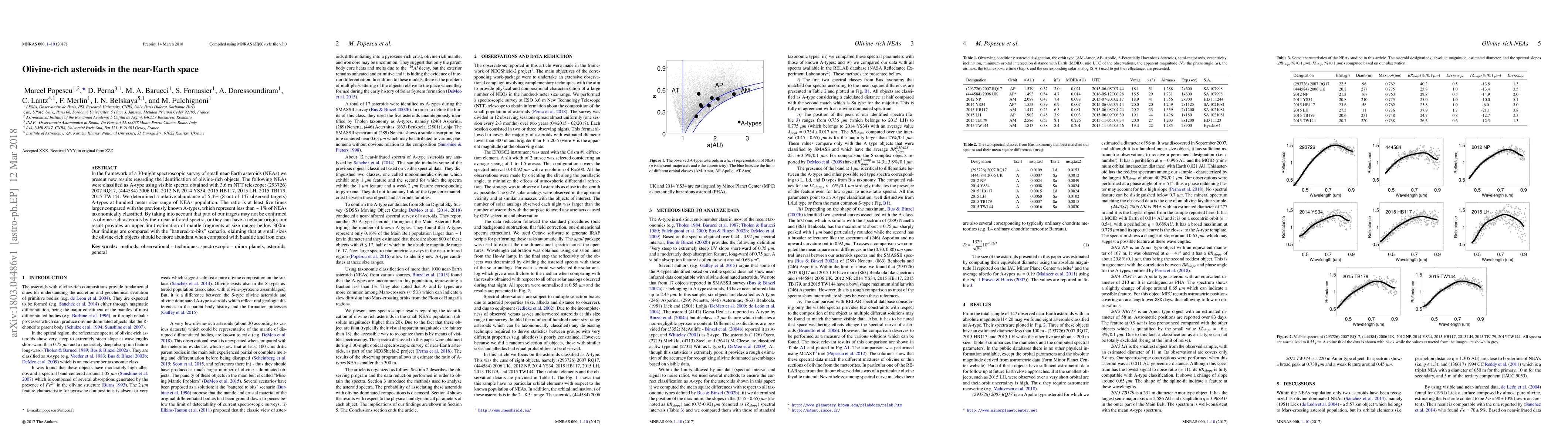 This study identifies 8 olivine-rich A-type near-Earth asteroids (NEAs) from a 30-night spectroscopic survey, revealing a relative abundance of 5.4% in the hundred meter size range, significantly higher than previously known. The findings support the "battered-to-bits" scenario, suggesting olivine-rich fragments are more prevalent in small NEAs.