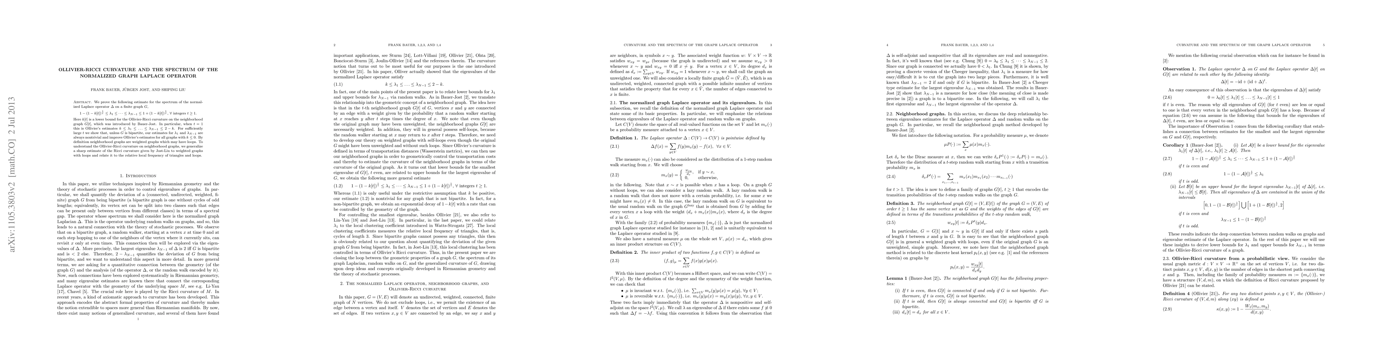 We prove the following estimate for the spectrum of the normalized Laplace operator $\Delta$ on a finite graph $G$, \begin{equation*}1- (1- k[t])^{\frac{1}{t}}\leq \lambda_1 \leq \cdots \leq \lambda_{N-1}\leq 1+ (1- k[t])^{\frac{1}{t}}, \,\forall \,\,\text{integers}\,\, t\geq 1. \end{equation*} Here $k[t]$ is a lower bound for the Ollivier-Ricci curvature on the neighborhood graph $G[t]$, which was introduced by Bauer-Jost. In particular, when $t=1$ this is Ollivier's estimates $k\leq \lambda_1\leq \ldots \leq \lambda_{N-1}\leq 2-k$. For sufficiently large $t$ we show that, unless $G$ is bipartite, our estimates for $\lambda_1$ and $\lambda_{N-1}$ are always nontrivial and improve Ollivier's estimates for all graphs with $k\leq 0$. By definition neighborhood graphs are weighted graphs which may have loops. To understand the Ollivier-Ricci curvature on neighborhood graphs, we generalize a sharp estimate of the Ricci curvature given by Jost-Liu to weighted graphs with loops and relate it to the relative local frequency of triangles and loops.