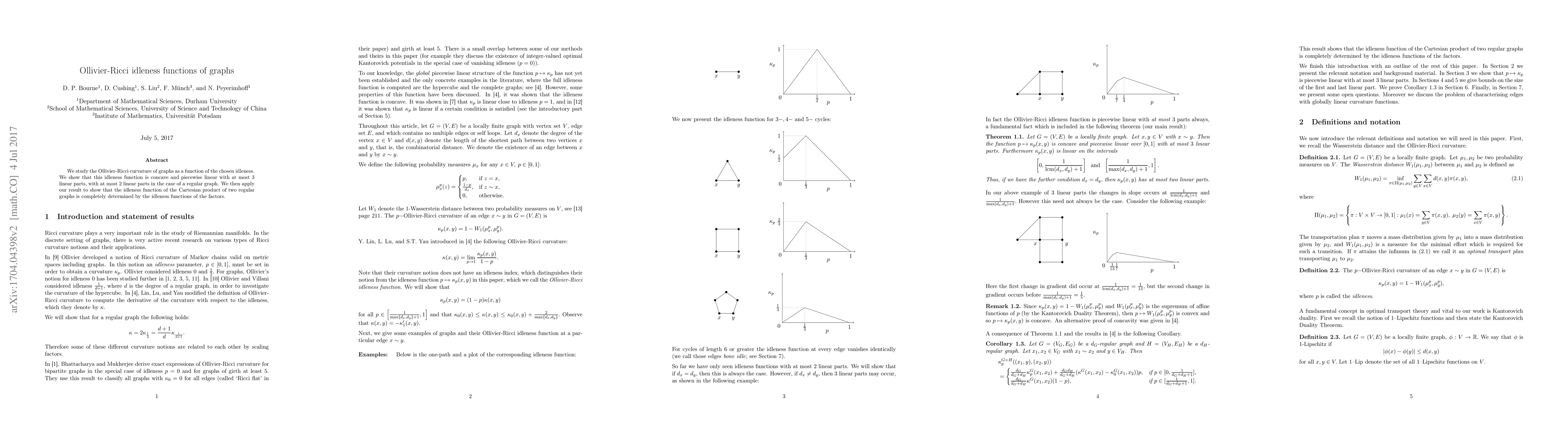 We study the Ollivier-Ricci curvature of graphs as a function of the chosen idleness. We show that this idleness function is concave and piecewise linear with at most $3$ linear parts, with at most $2$ linear parts in the case of a regular graph. We then apply our result to show that the idleness function of the Cartesian product of two regular graphs is completely determined by the idleness functions of the factors.