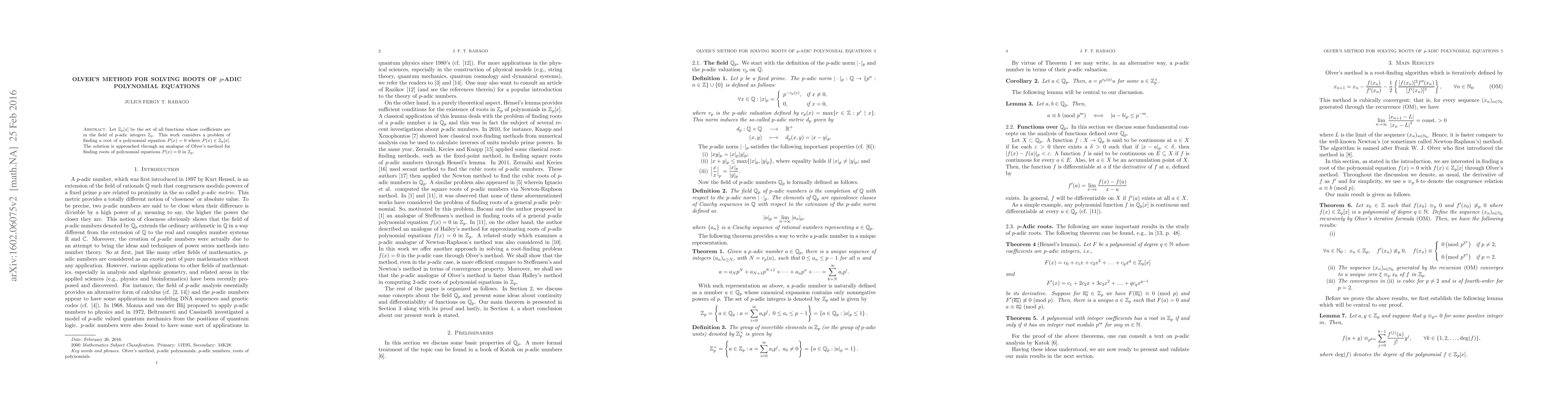 This research paper presents an analogue of Olver's method for approximating roots of p-adic polynomial equations, allowing for the solution of polynomial equations with coefficients in p-adic integers.
