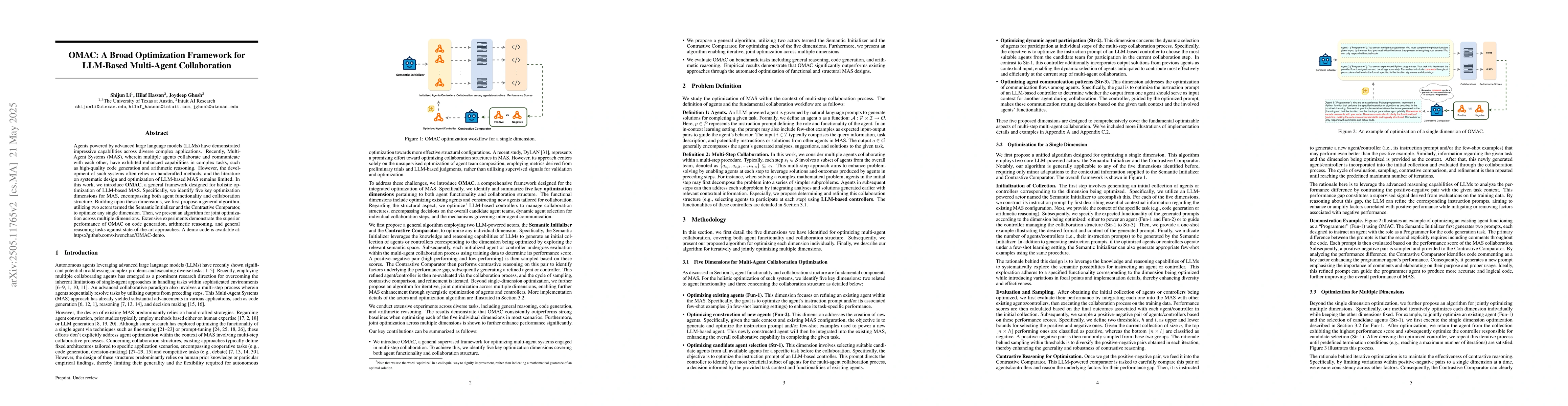 OMAC is a new framework that optimizes Large Language Model-based Multi-Agent Systems for complex tasks like code generation and arithmetic reasoning. It outperforms state-of-the-art approaches in these tasks.