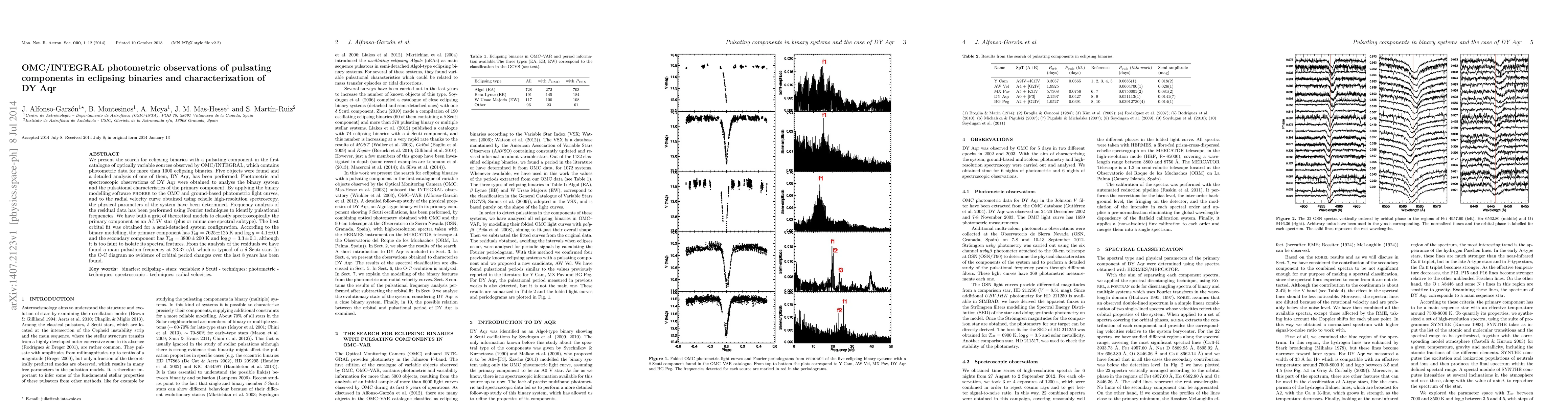 This paper reports the discovery of five eclipsing binaries with pulsating components in the OMC/INTEGRAL catalogue, with a detailed study of DY Aqr. Using phoebe software and Fourier techniques, the authors determined the physical parameters and pulsational characteristics of DY Aqr, classifying the primary component as an A7.5V star and identifying a main pulsation frequency typical of delta Scuti stars.