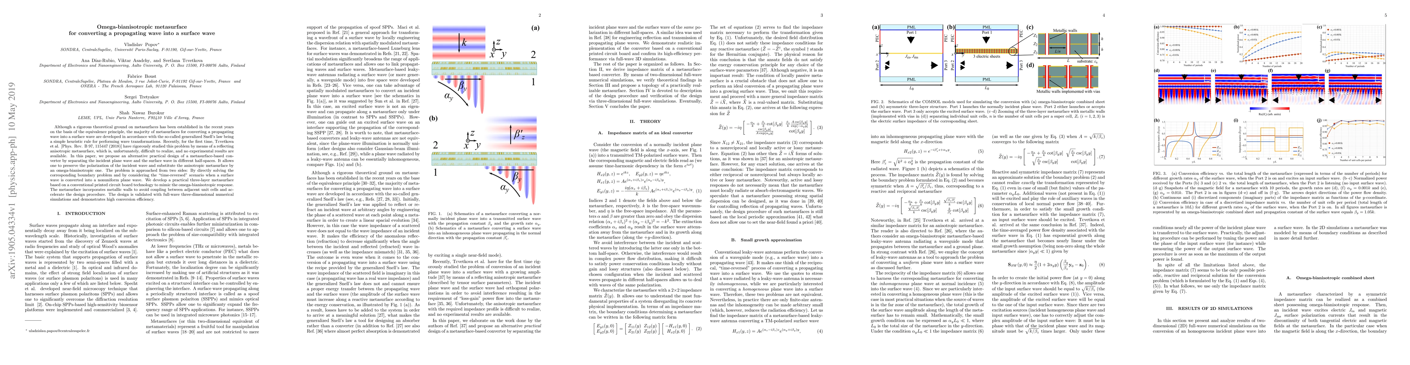 Although a rigorous theoretical ground on metasurfaces has been established in the recent years on the basis of the equivalence principle, the majority of metasurfaces for converting a propagating wave into a surface wave are developed in accordance with the so-called generalized Snell's law being a simple heuristic rule for performing wave transformations. Recently, for the first time, Tcvetkova et al. [Phys. Rev. B 97, 115447 (2018)] have rigorously studied this problem by means of a reflecting anisotropic metasurface, which is, unfortunately, difficult to realize, and no experimental results are available. In this paper, we propose an alternative practical design of a metasurface-based converter by separating the incident plane wave and the surface wave in different half-spaces. It allows one to preserve the polarization of the incident wave and substitute the anisotropic metasurface by an omega-bianisotropic one. The problem is approached from two sides: By directly solving the corresponding boundary problem and by considering the ``time-reversed'' scenario when a surface wave is converted into a nonuniform plane wave. We develop a practical three-layer metasurface based on a conventional printed circuit board technology to mimic the omega-bianisotropic response. The metasurface incorporates metallic walls to avoid coupling between adjacent unit cells and accelerate the design procedure. The design is validated with full-wave three-dimensional numerical simulations and demonstrates high conversion efficiency.