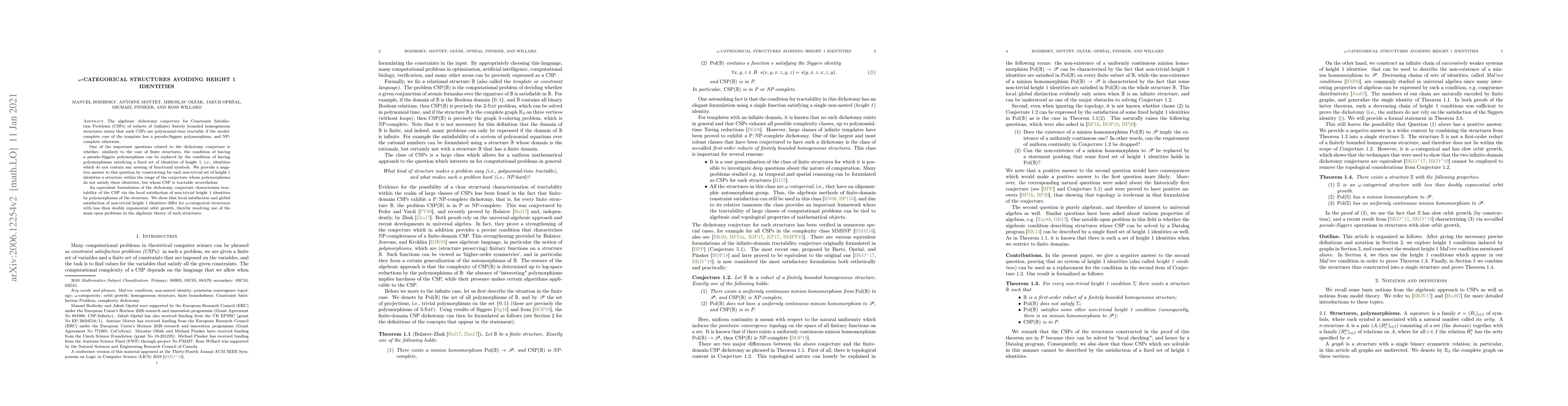 This paper disproves the conjecture that the tractability of CSPs for certain algebraic structures can be determined by the satisfaction of height 1 identities, showing that some tractable CSPs exist without polymorphisms satisfying these identities. It also demonstrates that local and global satisfaction of height 1 identities differ in $\omega$-categorical structures, resolving a significant open question in the field.