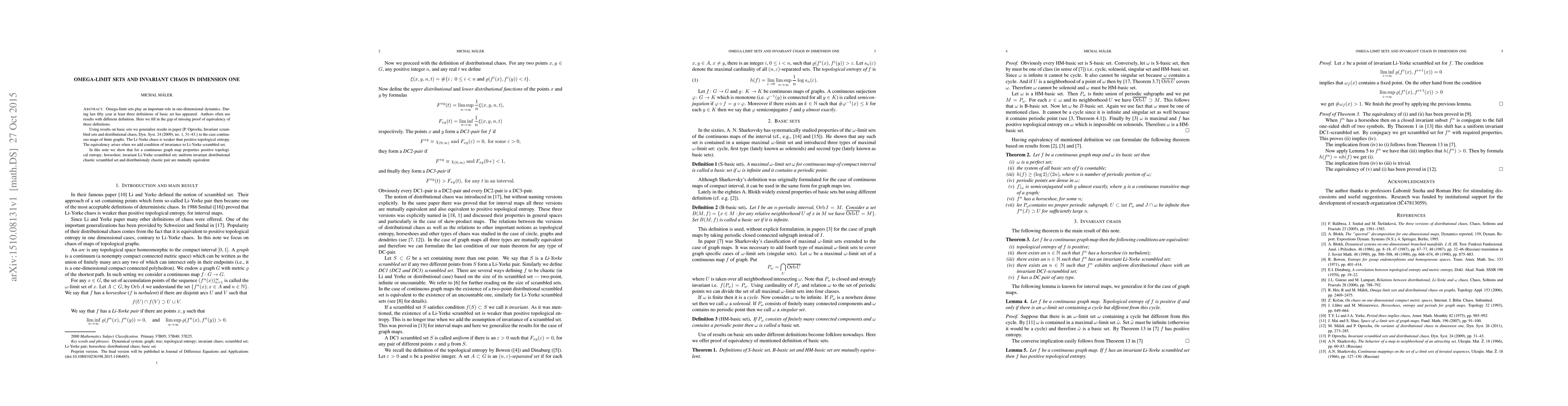 This paper addresses the equivalency of various definitions of basic sets in one-dimensional dynamics and extends results on distributional chaos to continuous maps of finite graphs. It demonstrates that several chaotic properties, including positive topological entropy, horseshoe, and different types of scrambled sets, are mutually equivalent under the condition of invariance.