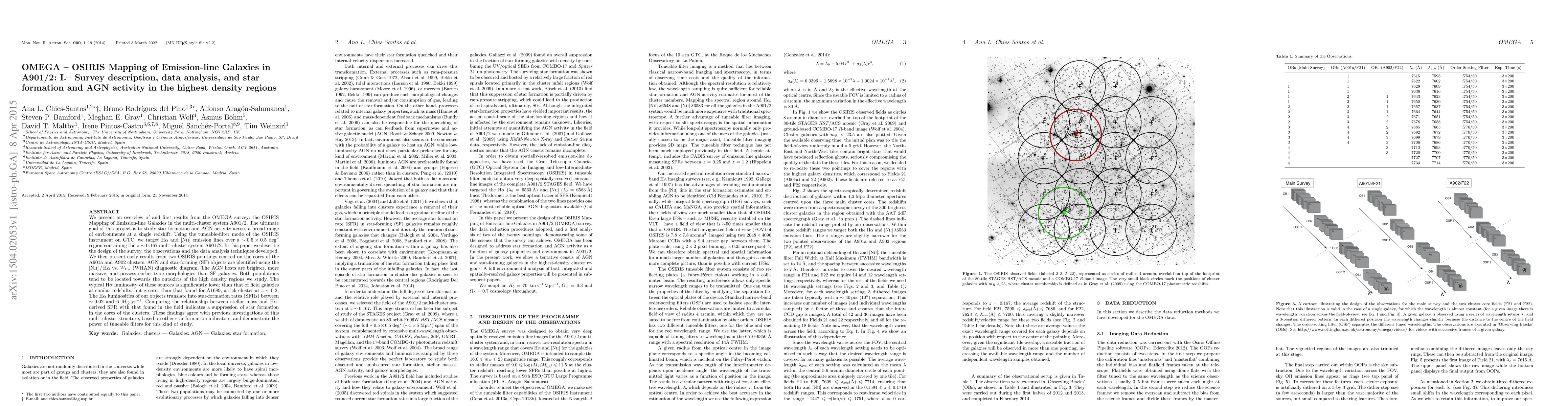 The OMEGA survey aims to study star formation and AGN activity in the high-density regions of the A901/2 cluster system using the OSIRIS instrument. Early results show AGN and star-forming galaxies exhibit distinct properties, with star formation suppressed in the cluster cores compared to field galaxies.