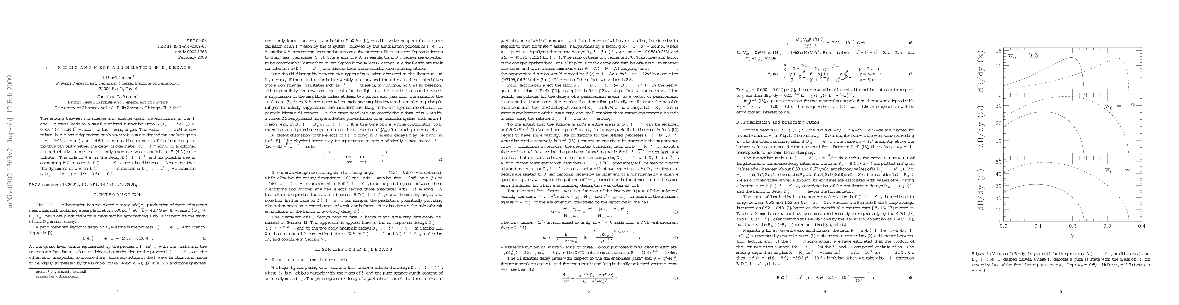 The mixing between nonstrange and strange quark wavefunctions in the $\omega$ and $\phi$ mesons leads to a small predicted branching ratio $\b(D_s^+ \to \omega e^+ \nu_e) = {\cal O}(10^{-4})(\delta/3.34^\circ)^2$, where $\delta$ is the mixing angle. The value $\delta = -3.34^\circ$ is obtained in a mass-independent analysis, while a mass-dependent analysis gives $\delta = -0.45^\circ$ at $m(\omega)$ and $-4.64^\circ$ at $m(\phi)$. Measurement of this branching ratio thus can tell whether the decay is dominated by $\phi$--$\omega$ mixing, or additional nonperturbative processes commonly known as "weak annihilation" (WA) contribute. The role of WA in the decay $D_s^+ \to \omega \pi^+$ and its possible use in estimating WA effects in $D_s^+ \to \omega e^+ \nu_e$ are also discussed. Assuming that the dynamics of WA in $D_s^+ \to \omega \pi^+$ is similar in $D_s^+ \to \omega e^+ \nu_e$ we estimate $\b(D_s^+ \to \omega e^+ \nu_e) = (1.3 \pm 0.5)\times 10^{-3}$.