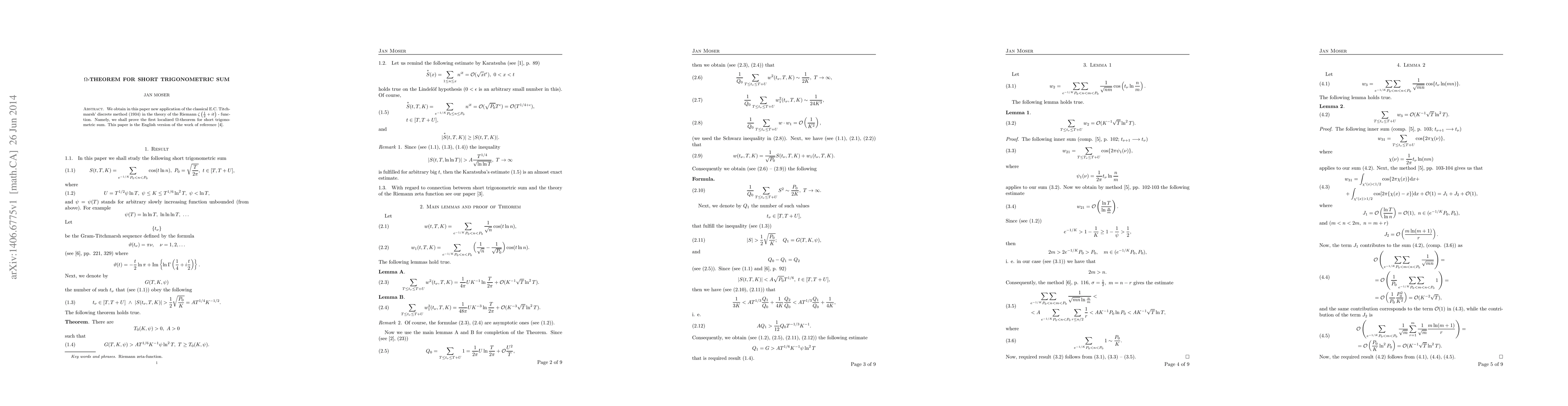 We obtain in this paper new application of the classical E.C. Titchmarsh' discrete method (1934) in the theory of the Riemann $\zf$ - function. Namely, we shall prove the first localized $\Omega$-theorem for short trigonometric sum. This paper is the English version of the work of reference \cite{4}.