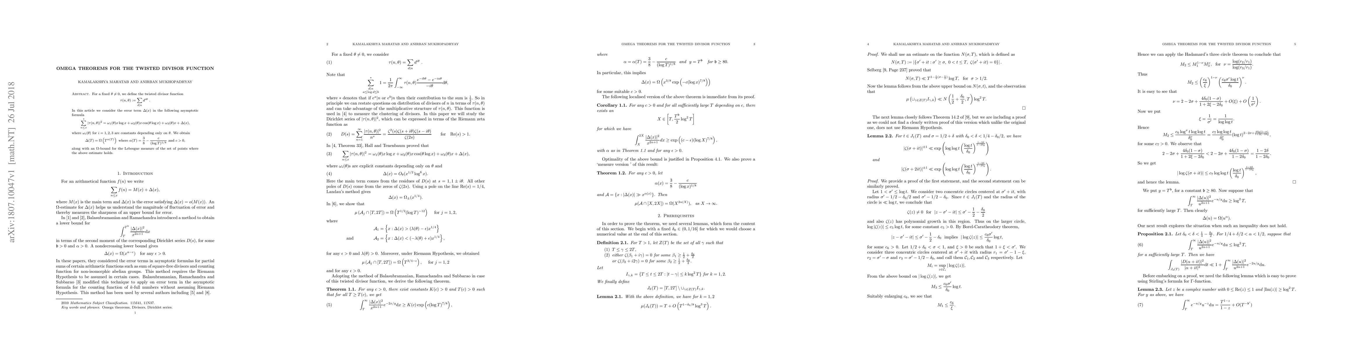 For a fixed $\theta\neq 0$, we define the twisted divisor function $$ \tau(n, \theta):=\sum_{d\mid n}d^{i\theta}\ .$$ In this article we consider the error term $\Delta(x)$ in the following asymptotic formula $$ \sum_{n\leq x}^*|\tau(n, \theta)|^2=\omega_1(\theta)x\log x + \omega_2(\theta)x\cos(\theta\log x) +\omega_3(\theta)x + \Delta(x),$$ where $\omega_i(\theta)$ for $i=1, 2, 3$ are constants depending only on $\theta$. We obtain $$\Delta(T)=\Omega\left(T^{\alpha(T)}\right) \text{ where } \alpha(T) =\frac{3}{8}-\frac{c}{(\log T)^{1/8}} \text{ and } c>0,$$ along with an $\Omega$-bound for the Lebesgue measure of the set of points where the above estimate holds.