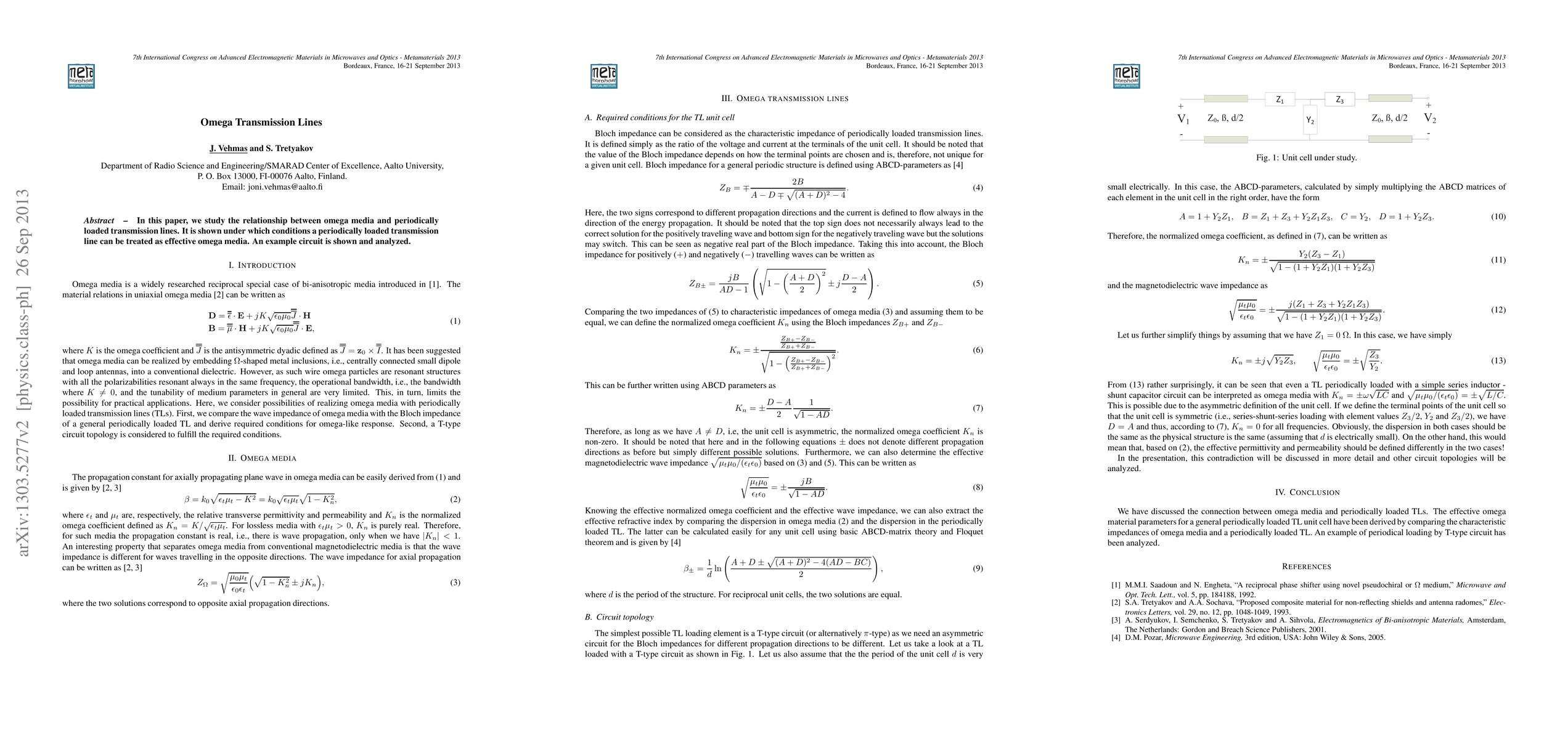 This paper demonstrates the realization of bi-anisotropic media with omega-type response using periodically loaded transmission lines, deriving the necessary unit cell circuit conditions and presenting an implementation analysis.