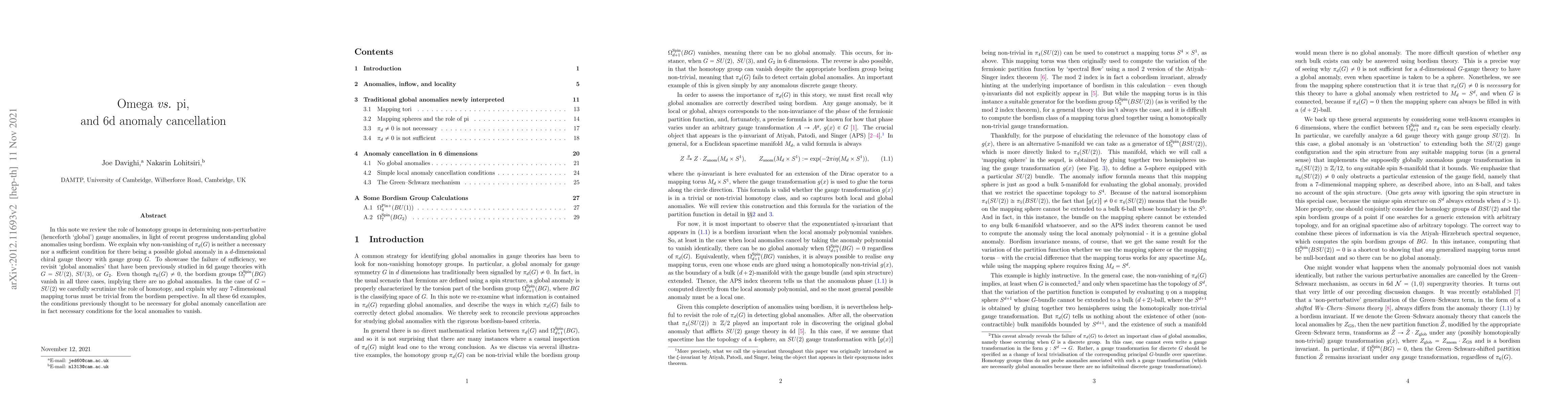 In this note we review the role of homotopy groups in determining non-perturbative (henceforth `global') gauge anomalies, in light of recent progress understanding global anomalies using bordism. We explain why non-vanishing of $\pi_d(G)$ is neither a necessary nor a sufficient condition for there being a possible global anomaly in a $d$-dimensional chiral gauge theory with gauge group $G$. To showcase the failure of sufficiency, we revisit `global anomalies' that have been previously studied in 6d gauge theories with $G=SU(2)$, $SU(3)$, or $G_2$. Even though $\pi_6(G) \neq 0$, the bordism groups $\Omega_7^\mathrm{Spin}(BG)$ vanish in all three cases, implying there are no global anomalies. In the case of $G=SU(2)$ we carefully scrutinize the role of homotopy, and explain why any 7-dimensional mapping torus must be trivial from the bordism perspective. In all these 6d examples, the conditions previously thought to be necessary for global anomaly cancellation are in fact necessary conditions for the local anomalies to vanish.