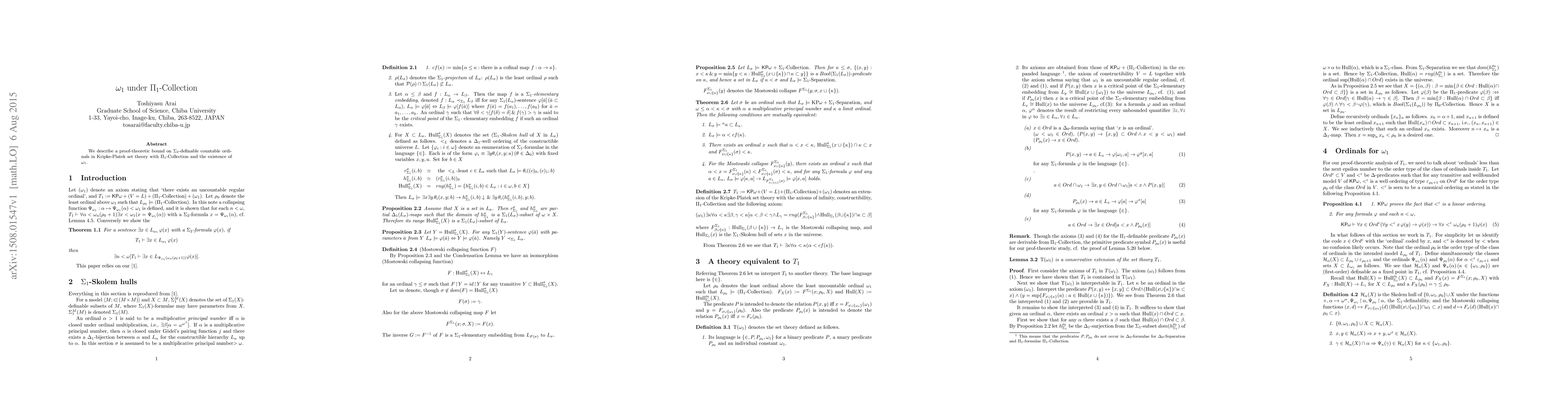 This paper establishes a proof-theoretic limit on $Sigma_{2}$-definable countable ordinals within Kripke-Platek set theory augmented by $Pi_{1}$-Collection and the presence of $omega_{1}$. The findings provide insights into the ordinal heights achievable under these set-theoretic conditions.