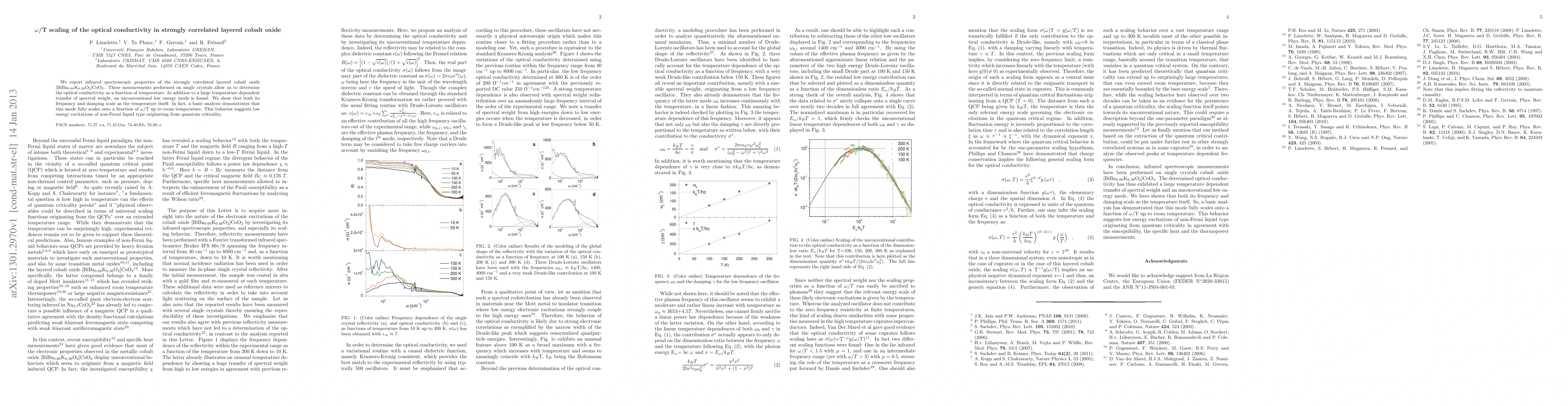 This study investigates the optical conductivity of a strongly correlated layered cobalt oxide using infrared spectroscopy on single crystals. It reveals a large temperature-dependent spectral weight transfer and an unconventional low-energy mode whose frequency and damping scale with temperature, fully scaling onto a function of $\omega$/T, indicating non-Fermi liquid excitations likely stemming from quantum criticality.