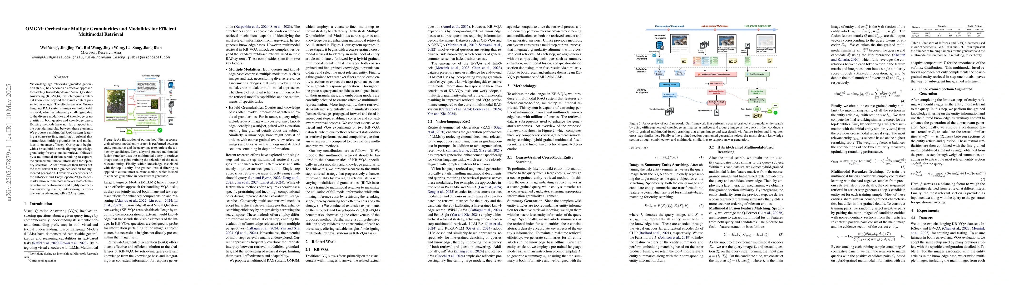 The research proposes a multimodal RAG system for KB-VQA that employs a coarse-to-fine, multi-step retrieval process, harmonizing multiple granularities and modalities to improve efficiency.