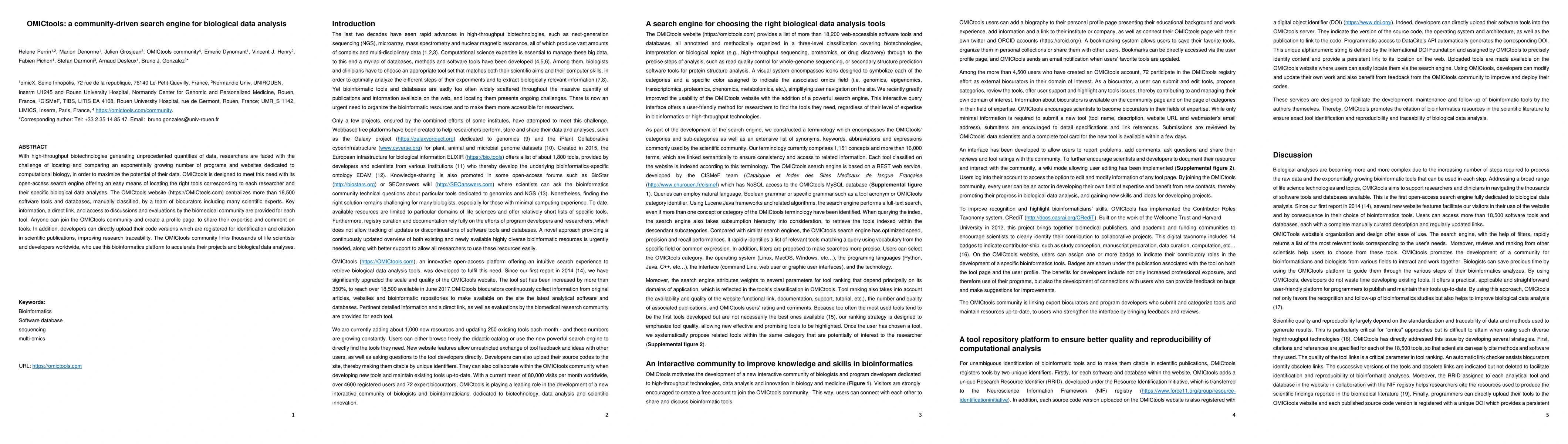 OMICtools is an open-access search engine that centralizes over 18,500 bioinformatics tools and databases, facilitating researchers in locating and comparing computational biology resources. The platform fosters community engagement through user profiles, expert evaluations, and developer contributions, enhancing research traceability and collaboration.