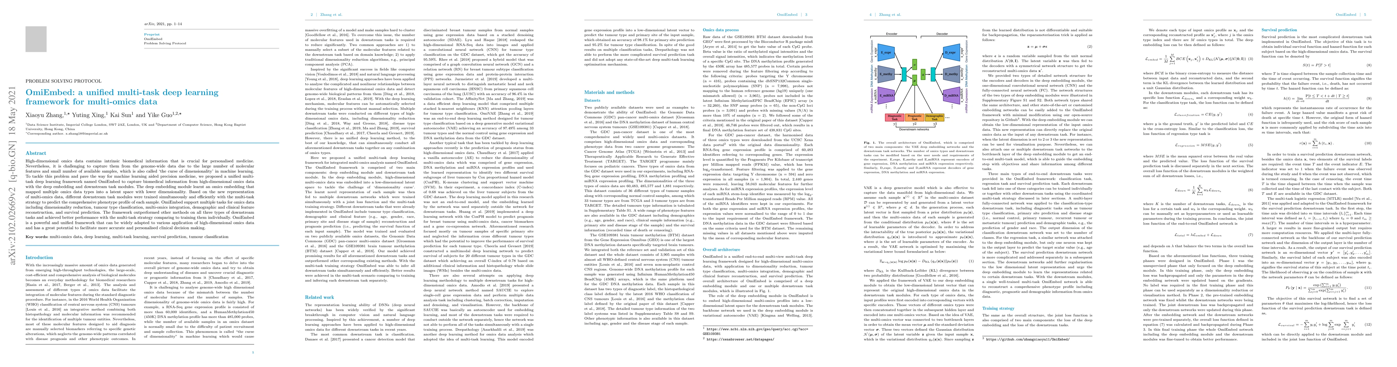 OmiEmbed is a unified multi-task deep learning framework designed to effectively capture biomedical information from high-dimensional omics data by employing deep embedding and multi-task learning. It outperforms other methods in dimensionality reduction, tumour classification, and multi-omics integration, thereby enhancing precision medicine.