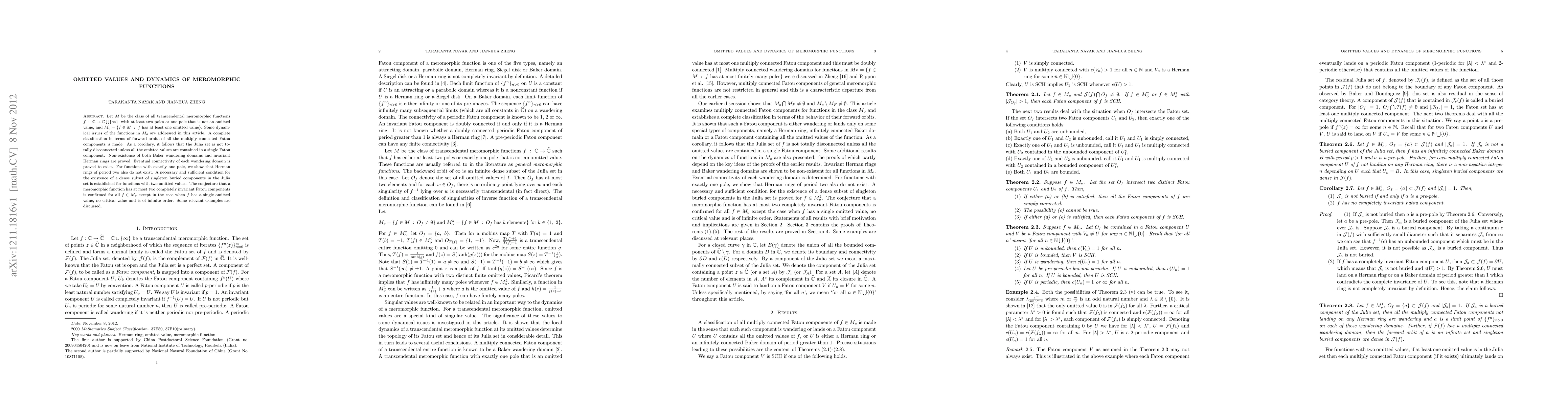 This paper classifies transcendental meromorphic functions with at least one omitted value, proving the non-existence of Baker wandering domains and invariant Herman rings, and confirming the conjecture that such functions have at most two completely invariant Fatou components, except for specific cases.