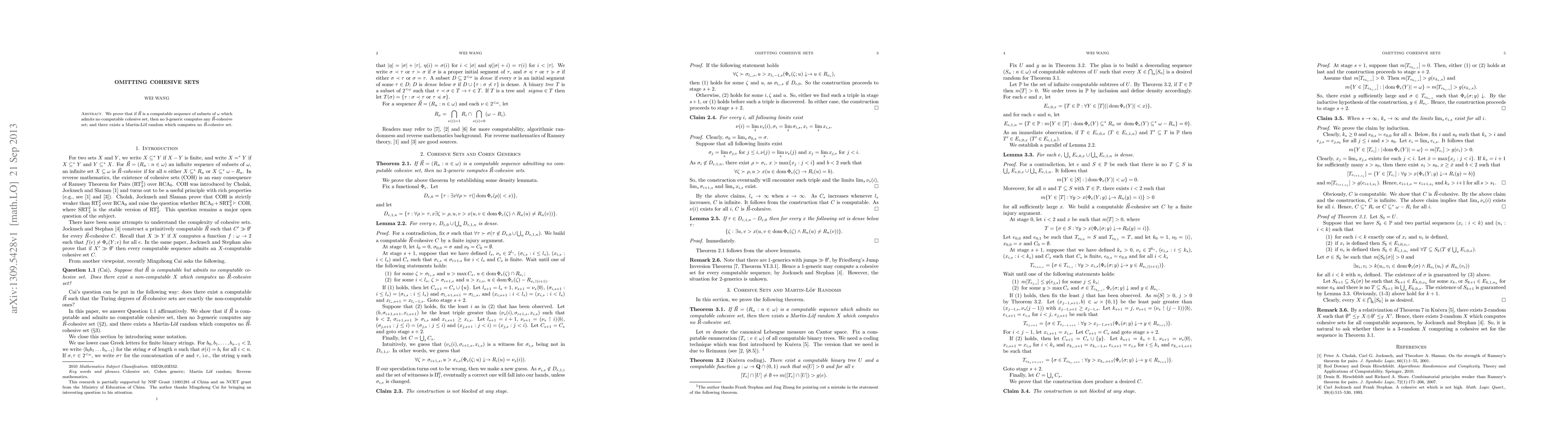 A computable sequence of subsets with no cohesive set cannot be computed by a 3-generic, and there exists a Martin-L"{o}f random that also computes no cohesive sets.