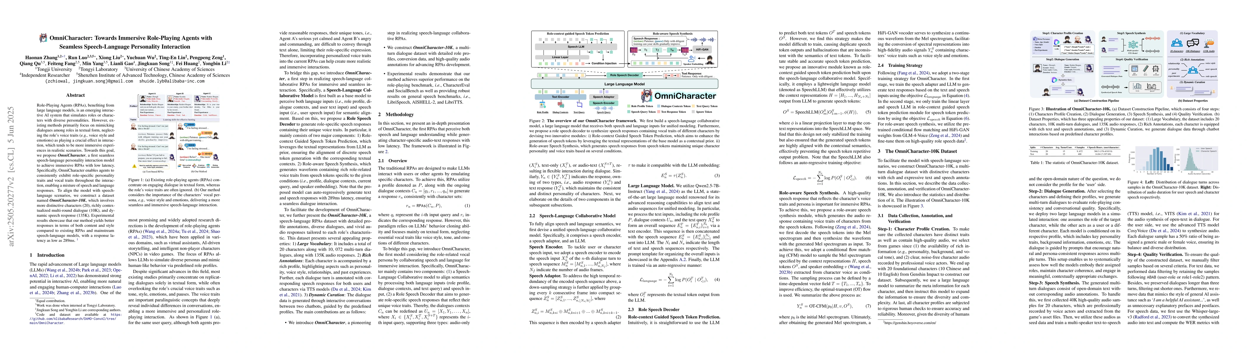 OmniCharacter proposes a novel model for immersive role-playing agents that seamlessly integrates speech-language personality interaction, achieving better responses with low latency.