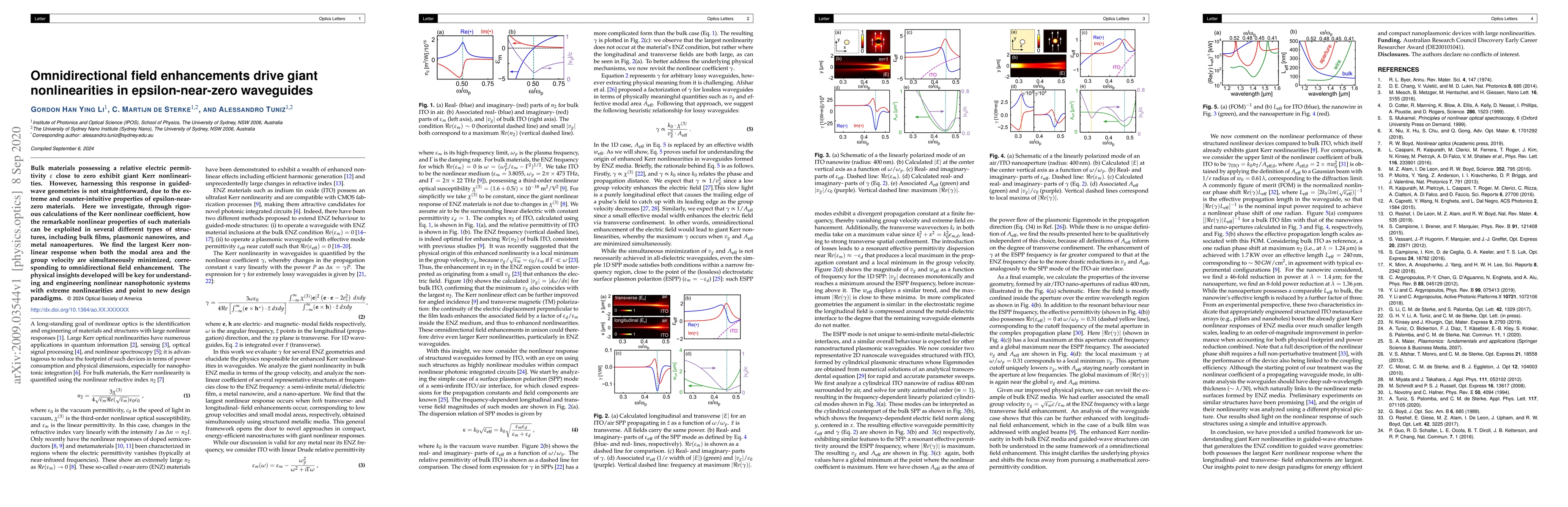 This paper explores how materials with near-zero electric permittivity can achieve giant Kerr nonlinearities when integrated into waveguide structures, finding that omnidirectional field enhancements lead to the largest nonlinear responses. The study provides insights into designing advanced nonlinear nanophotonic systems.