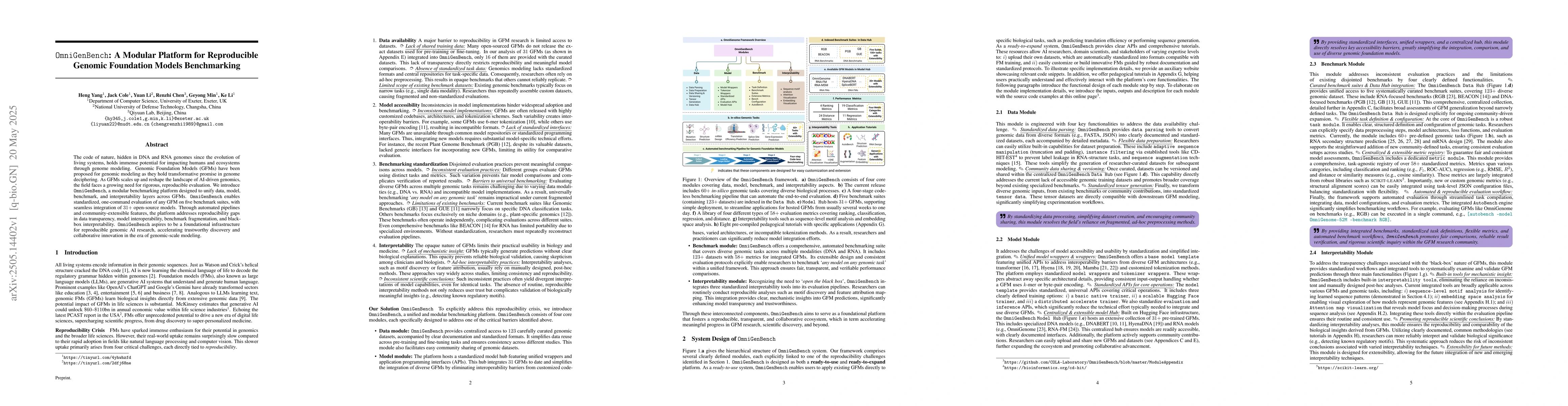 OmniGenBench is a modular platform that enables standardized evaluation of Genomic Foundation Models, addressing key reproducibility challenges in genomic AI research.