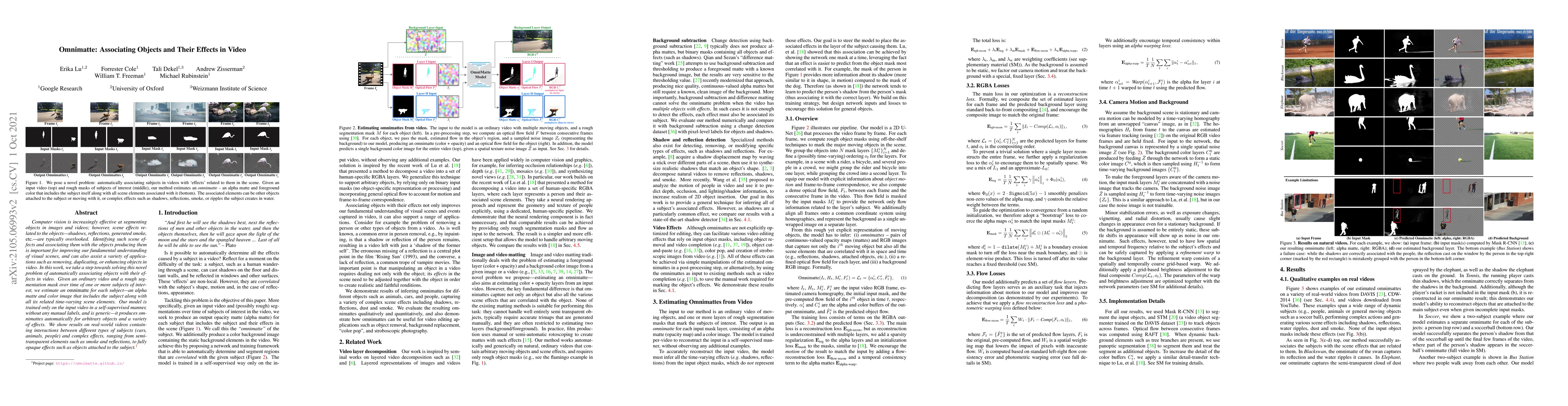 This paper introduces Omnimatte, a method for automatically associating objects in videos with their related scene effects, such as shadows and reflections, without manual labeling. The model generates an omnimatte that includes both the object and its effects, aiding in applications like object manipulation in video.