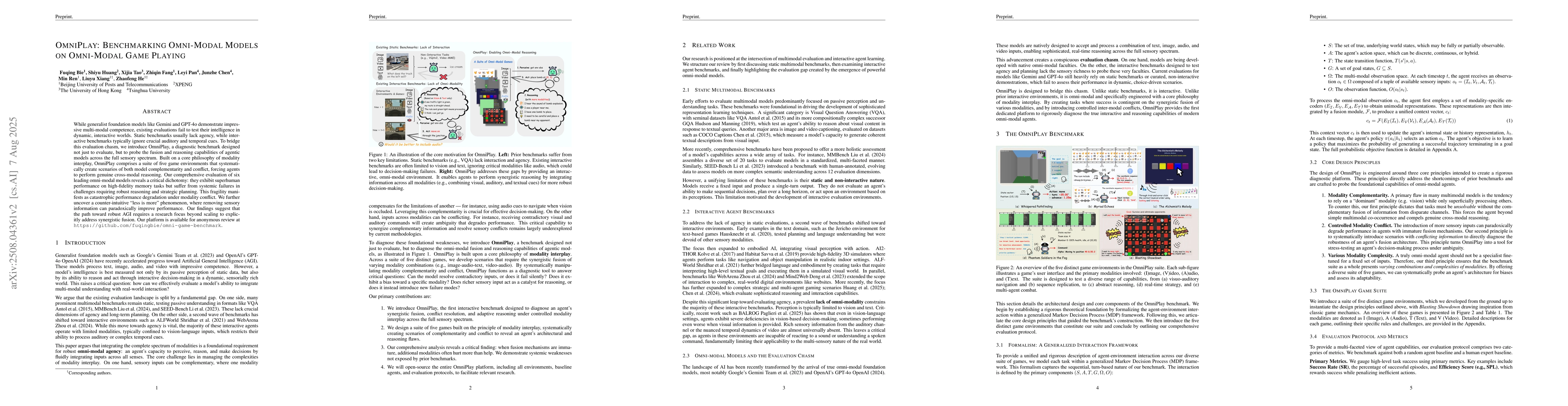 While generalist foundation models like Gemini and GPT-4o demonstrate impressive multi-modal competence, existing evaluations fail to test their intelligence in dynamic, interactive worlds. Static benchmarks lack agency, while interactive benchmarks suffer from a severe modal bottleneck, typically ignoring crucial auditory and temporal cues. To bridge this evaluation chasm, we introduce OmniPlay, a diagnostic benchmark designed not just to evaluate, but to probe the fusion and reasoning capabilities of agentic models across the full sensory spectrum. Built on a core philosophy of modality interdependence, OmniPlay comprises a suite of five game environments that systematically create scenarios of both synergy and conflict, forcing agents to perform genuine cross-modal reasoning. Our comprehensive evaluation of six leading omni-modal models reveals a critical dichotomy: they exhibit superhuman performance on high-fidelity memory tasks but suffer from systemic failures in challenges requiring robust reasoning and strategic planning. We demonstrate that this fragility stems from brittle fusion mechanisms, which lead to catastrophic performance degradation under modality conflict and uncover a counter-intuitive "less is more" paradox, where removing sensory information can paradoxically improve performance. Our findings suggest that the path toward robust AGI requires a research focus beyond scaling to explicitly address synergistic fusion. Our platform is available for anonymous review at https://github.com/fuqingbie/omni-game-benchmark.