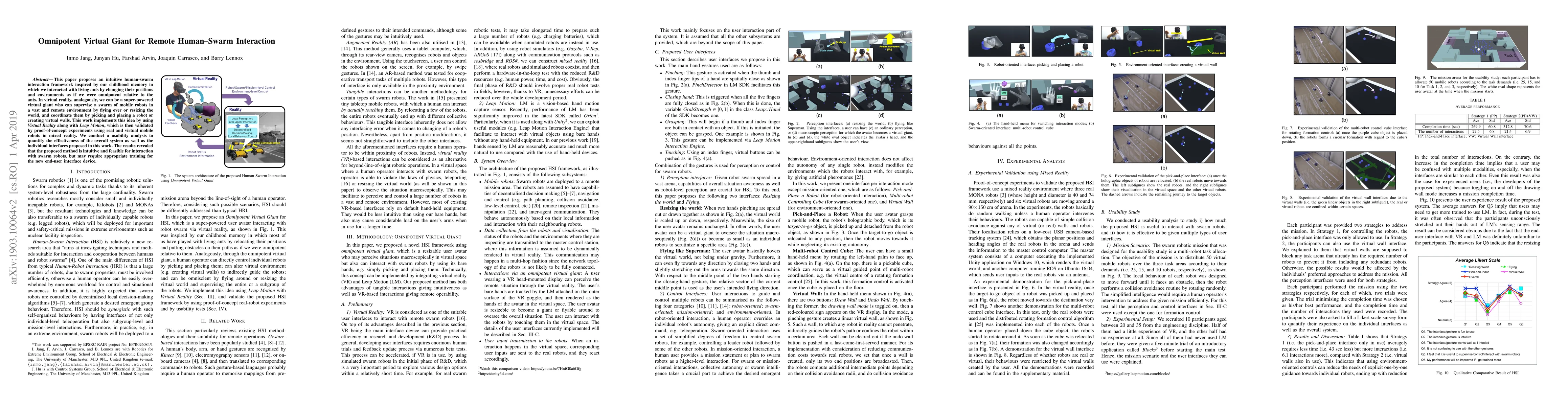 This paper introduces a VR-based framework for intuitive human-swarm interaction, allowing users to manipulate a swarm of robots as if they were a virtual giant. The system combines VR and Leap Motion, validated by mixed-reality experiments, showing its effectiveness though requiring user training.