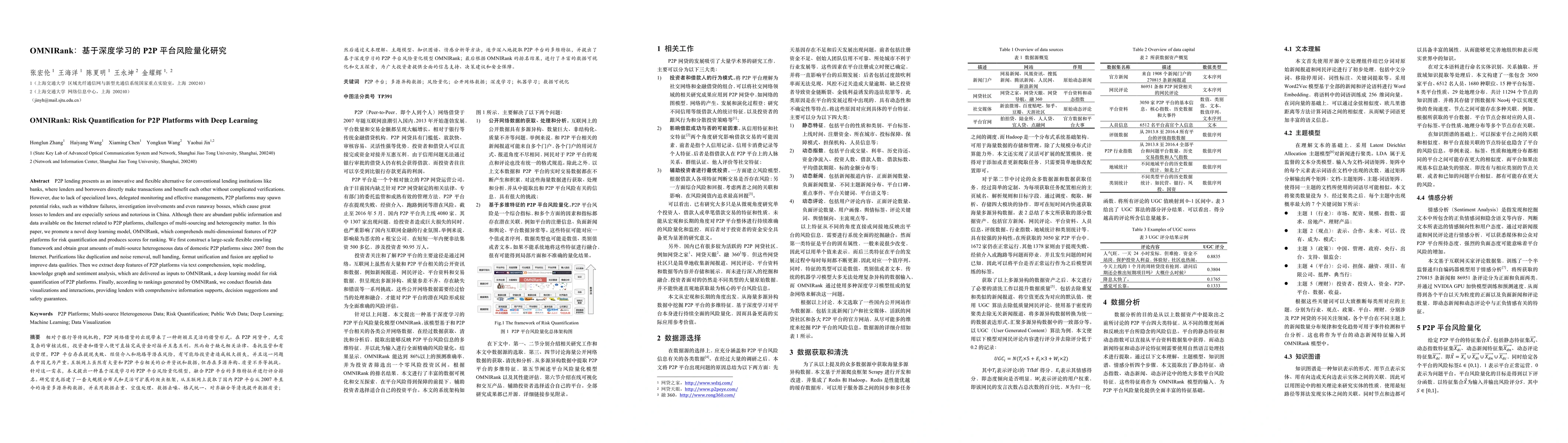P2P lending presents as an innovative and flexible alternative for conventional lending institutions like banks, where lenders and borrowers directly make transactions and benefit each other without complicated verifications. However, due to lack of specialized laws, delegated monitoring and effective managements, P2P platforms may spawn potential risks, such as withdraw failures, investigation involvements and even runaway bosses, which cause great losses to lenders and are especially serious and notorious in China. Although there are abundant public information and data available on the Internet related to P2P platforms, challenges of multi-sourcing and heterogeneity matter. In this paper, we promote a novel deep learning model, OMNIRank, which comprehends multi-dimensional features of P2P platforms for risk quantification and produces scores for ranking. We first construct a large-scale flexible crawling framework and obtain great amounts of multi-source heterogeneous data of domestic P2P platforms since 2007 from the Internet. Purifications like duplication and noise removal, null handing, format unification and fusion are applied to improve data qualities. Then we extract deep features of P2P platforms via text comprehension, topic modeling, knowledge graph and sentiment analysis, which are delivered as inputs to OMNIRank, a deep learning model for risk quantification of P2P platforms. Finally, according to rankings generated by OMNIRank, we conduct flourish data visualizations and interactions, providing lenders with comprehensive information supports, decision suggestions and safety guarantees.
