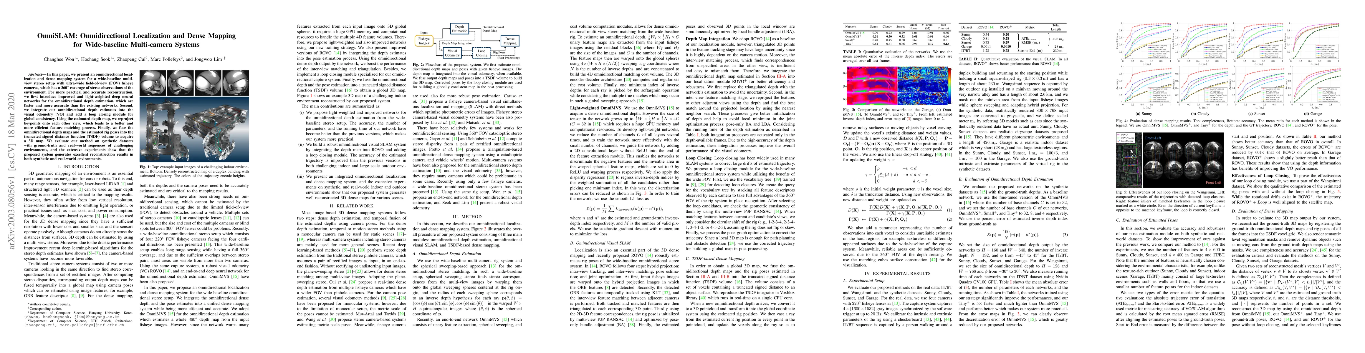 OmniSLAM introduces a system for omnidirectional localization and dense mapping using ultra-wide fisheye cameras, employing improved deep neural networks for depth estimation and integrating these into visual odometry for accurate 3D mapping. The method achieves superior reconstruction in both synthetic and real-world environments.