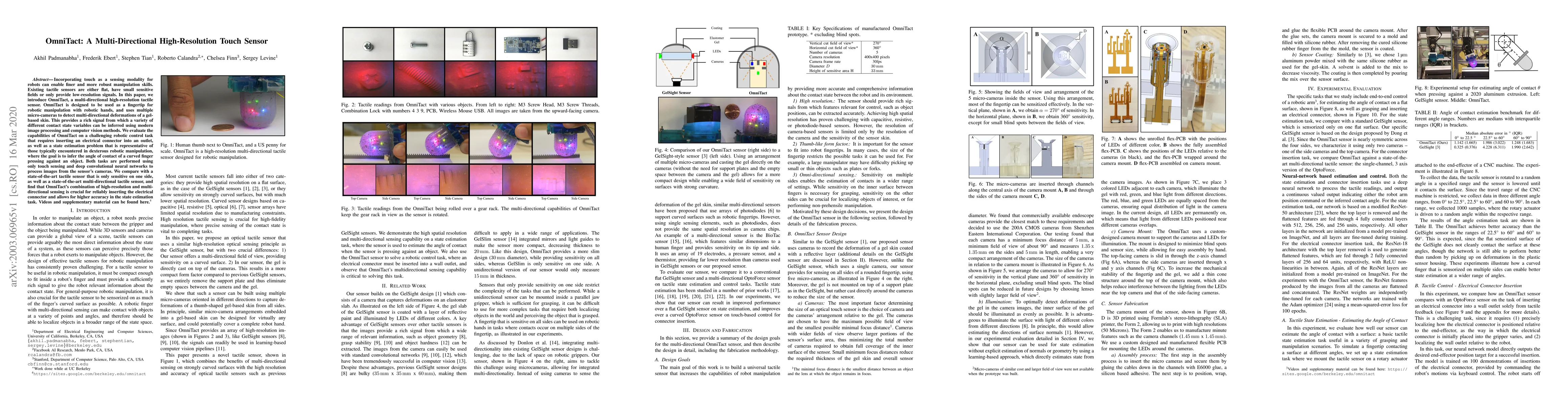 Incorporating touch as a sensing modality for robots can enable finer and more robust manipulation skills. Existing tactile sensors are either flat, have small sensitive fields or only provide low-resolution signals. In this paper, we introduce OmniTact, a multi-directional high-resolution tactile sensor. OmniTact is designed to be used as a fingertip for robotic manipulation with robotic hands, and uses multiple micro-cameras to detect multi-directional deformations of a gel-based skin. This provides a rich signal from which a variety of different contact state variables can be inferred using modern image processing and computer vision methods. We evaluate the capabilities of OmniTact on a challenging robotic control task that requires inserting an electrical connector into an outlet, as well as a state estimation problem that is representative of those typically encountered in dexterous robotic manipulation, where the goal is to infer the angle of contact of a curved finger pressing against an object. Both tasks are performed using only touch sensing and deep convolutional neural networks to process images from the sensor's cameras. We compare with a state-of-the-art tactile sensor that is only sensitive on one side, as well as a state-of-the-art multi-directional tactile sensor, and find that OmniTact's combination of high-resolution and multi-directional sensing is crucial for reliably inserting the electrical connector and allows for higher accuracy in the state estimation task. Videos and supplementary material can be found at https://sites.google.com/berkeley.edu/omnitact