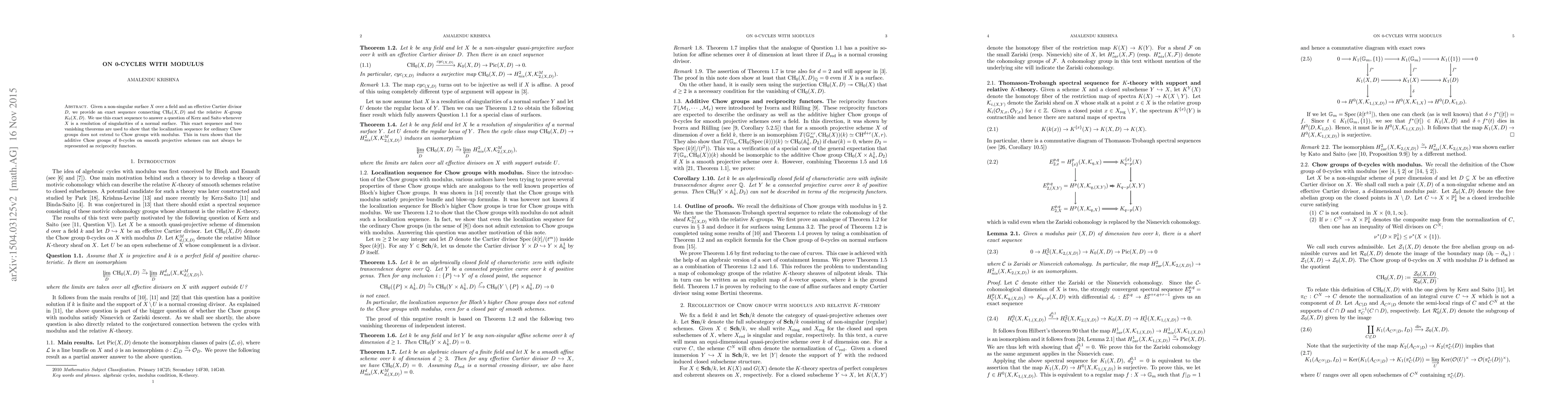 Summary: The paper establishes an exact sequence linking Chow groups of 0-cycles with modulus and relative K-groups for smooth surfaces, resolving a question posed by Kerz and Saito. It demonstrates that this sequence indicates the non-extension of the localization sequence for Chow groups to those with modulus.
