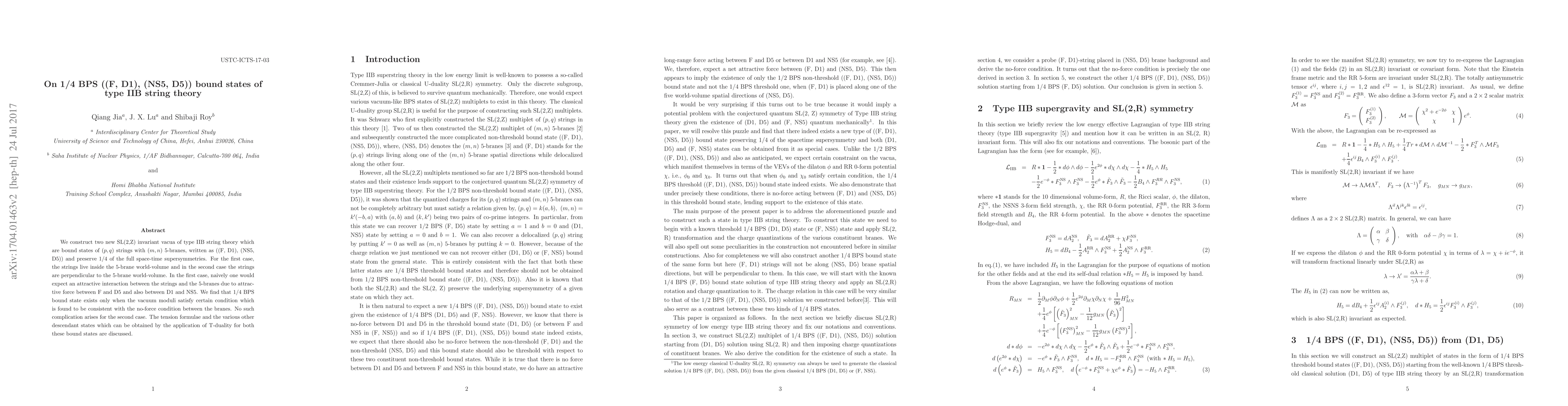 We construct two new SL(2,Z) invariant vacua of type IIB string theory which are bound states of $(p,q)$ strings with $(m,n)$ 5-branes, written as ((F, D1), (NS5, D5)) and preserve 1/4 of the full space-time supersymmetries. For the first case, the strings live inside the 5-brane world-volume and in the second case the strings are perpendicular to the 5-brane world-volume. In the first case, naively one would expect an attractive interaction between the strings and the 5-branes due to attractive force between F and D5 and also between D1 and NS5. We find that 1/4 BPS bound state exists only when the vacuum moduli satisfy certain condition which is found to be consistent with the no-force condition between the branes. No such complication arises for the second case. The tension formulae and the various other descendant states which can be obtained by the application of T-duality for both these bound states are discussed.