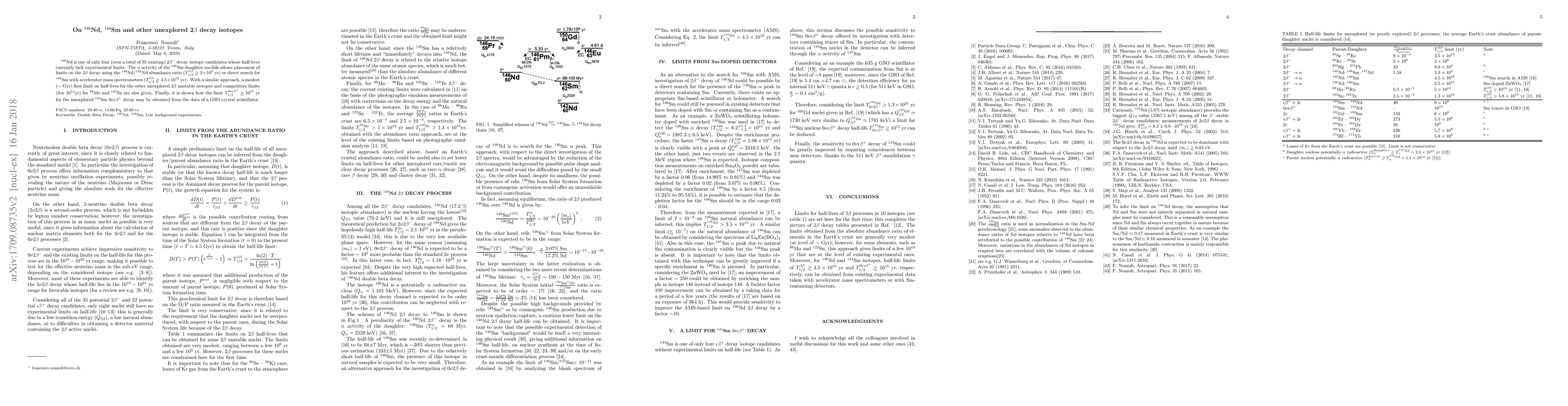 This paper establishes experimental limits for the half-lives of several unexplored 2$\beta$ decay isotopes, including $^{146}$Nd, $^{98}$Mo, and $^{122}$Sn, using $\alpha$ activity and accelerator mass spectrometry. It also provides a limit for the $^{144}$Sm $0\nu\epsilon\beta^+$ decay based on GSO crystal scintillator data.