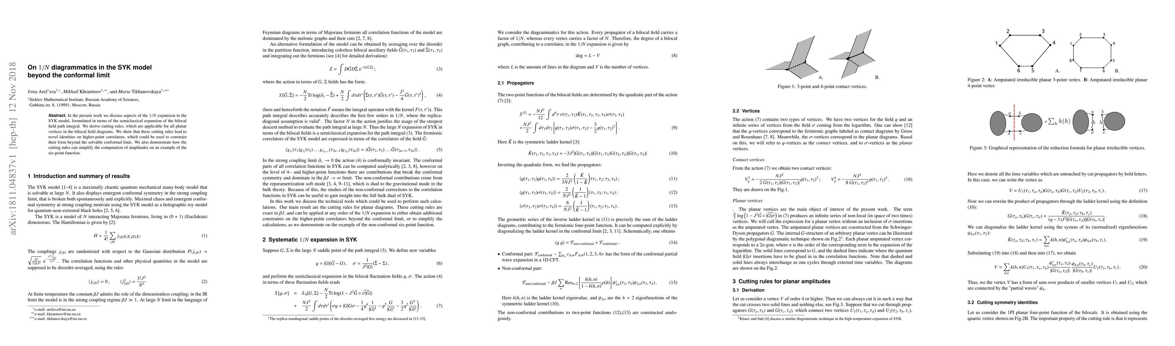 In the present work we discuss aspects of the 1/N expansion in the SYK model, formulated in terms of the semiclassical expansion of the bilocal field path integral. We derive cutting rules, which are applicable for all planar vertices in the bilocal field diagrams. We show that these cutting rules lead to novel identities on higher-point correlators, which could be used to constrain their form beyond the solvable conformal limit. We also demonstrate how the cutting rules can simplify the computation of amplitudes on an example of the six-point function.