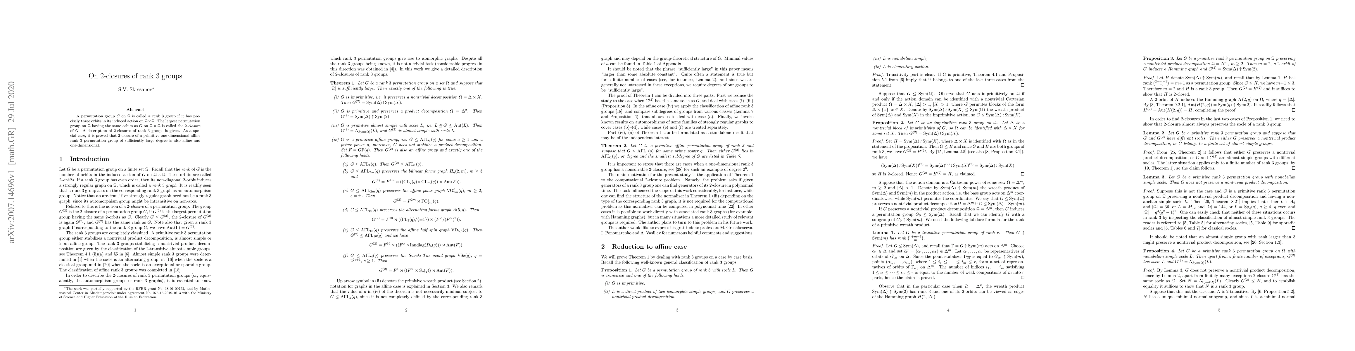This paper describes the 2-closures of rank 3 permutation groups, which are the largest permutation groups sharing the same orbits as the original group. It also proves that the 2-closure of a sufficiently large primitive one-dimensional affine rank 3 permutation group remains affine and one-dimensional.